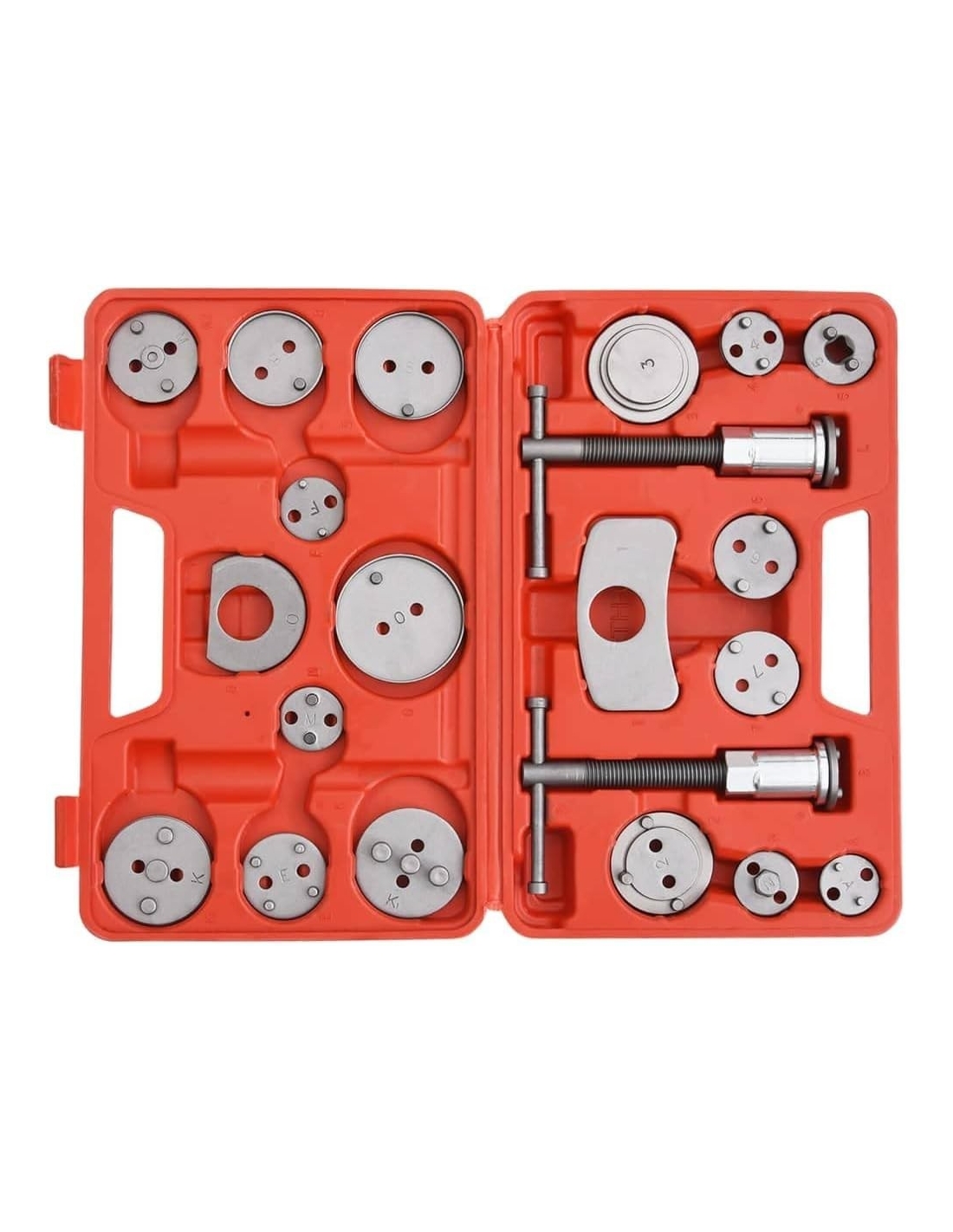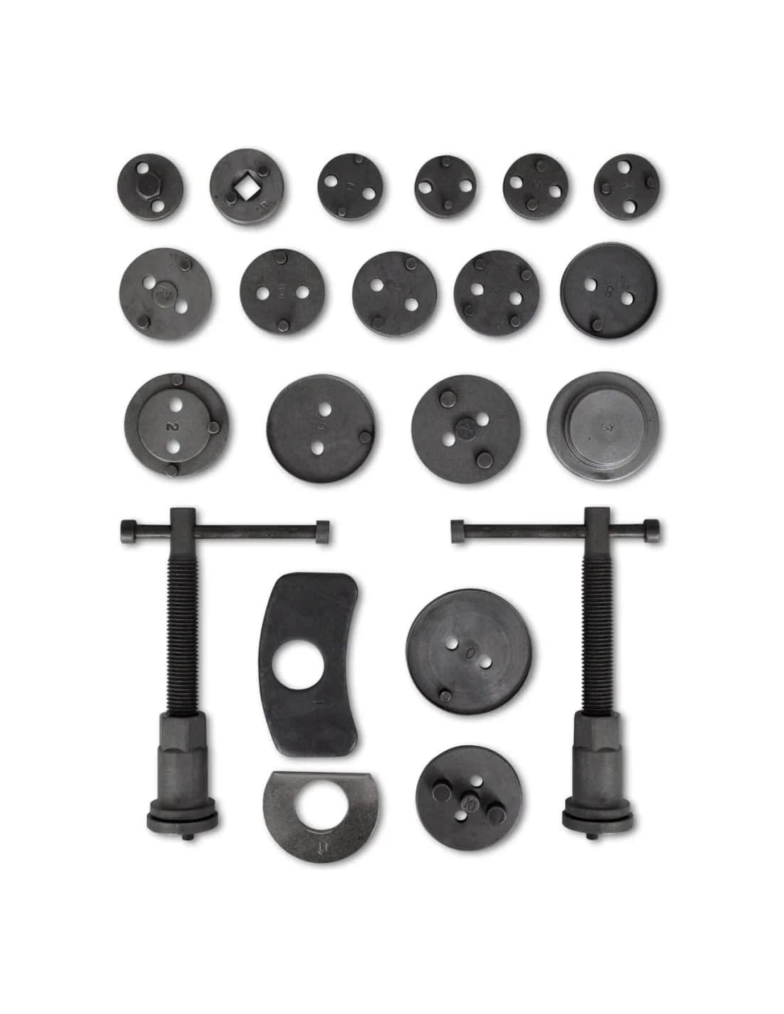 - Utilizzando questo strumento si evitano danni alla guarnizione.Il set è composto da 2 estrattori, 2 piastre di reazione, 17 adattatori e viene fornito in una robusta custodia di plastica.