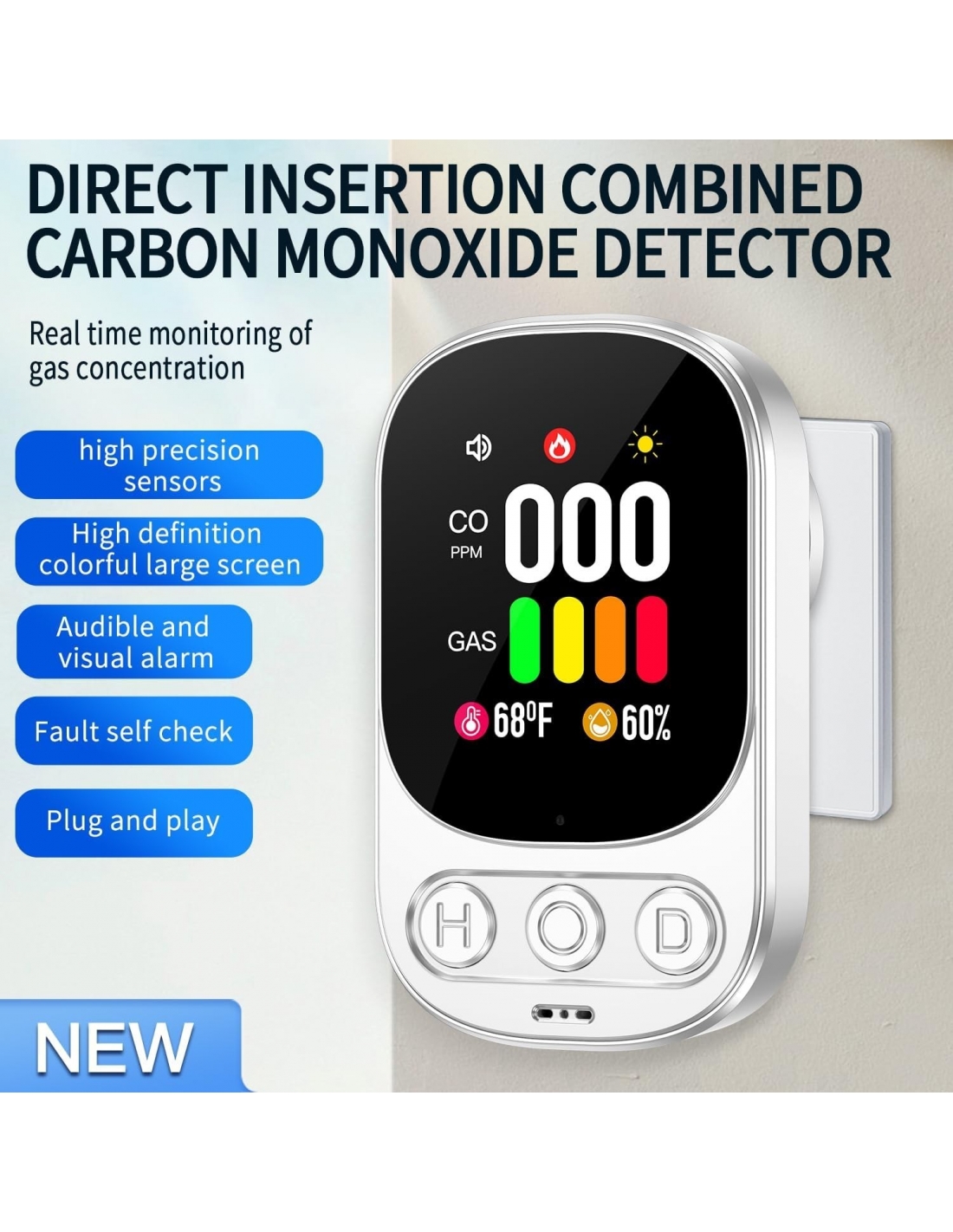 Gedsffati HD05-B Rilevatore di Gas e Monossido di Carbonio con Spina per Casa, Allarme di CO, Rivelatore di Gas Combustibile per Gas Naturale LPG Metano Propano Butano, Bianco