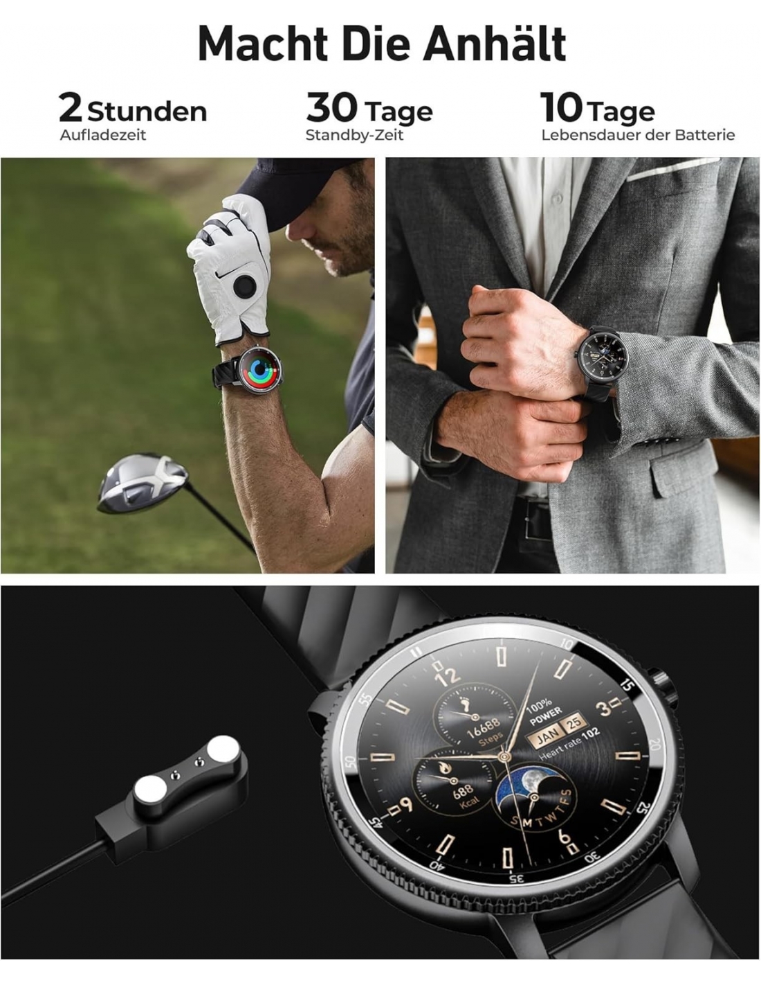 - Display Hd Grande E Luminoso - AOMIAO Watch DV09 è dotato di un display HD full-touch da 1,46 pollici con immagini chiare e vivide, risoluzione fine e PPI elevato per una lettura agevole in qualsiasi condizione di luce. È possibile regolare la luminosità dello schermo in qualsiasi momento attraverso la barra di stato per adattarsi ai diversi ambienti. Per garantirvi il massimo comfort nell'uso quotidiano, abbiamo appositamente migliorato la durata della batteria, con un design di ricarica magnetica, in modo che l'orologio continui a funzionare per 7-10 giorni in condizioni di uso normale e vi accompagni in qualsiasi momento.