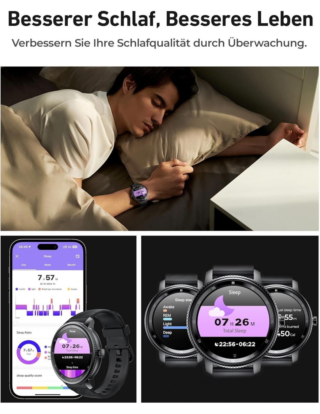 AOMIAO DV09 Smartwatch Uomo Donna con Funzione Telefono, 1.46”HD Touchscreen, Fitness Tracker Impermeabile con 100 Sport Cardiofrequenzimetro Monitoraggio del Sonno Orologio da Polso per iOS Android + 1 CINTURINO IN PELLE