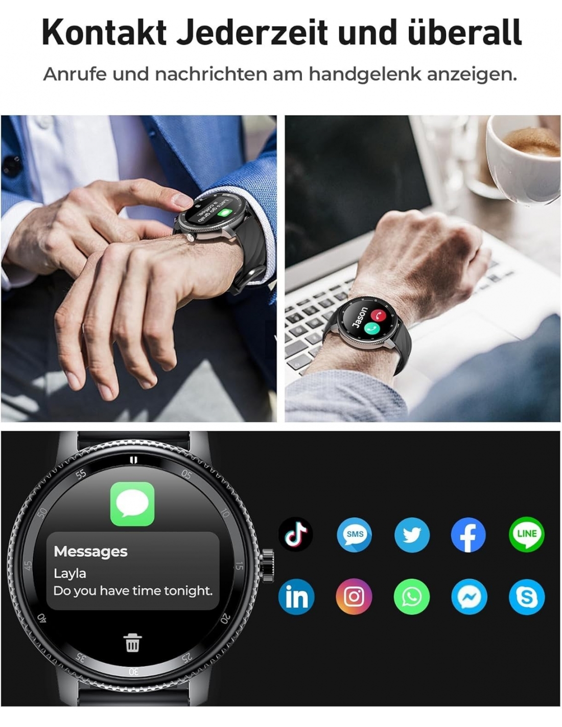 - Chiamate e notifiche Bluetooth - Lo smartwatch DV09 è dotato del più recente chip Bluetooth 5.3, di altoparlanti ad alta fedeltà e di un microfono per facilitare la comunicazione. Collegandosi al telefono cellulare tramite l'app “DaFit”, è possibile ricevere ed effettuare chiamate direttamente dall'orologio, nonché ricevere notifiche in tempo reale da messaggi di testo e app. L'assistente vocale intelligente integrato aiuta a controllare il telefono cellulare con facilità, aumentando la comodità.