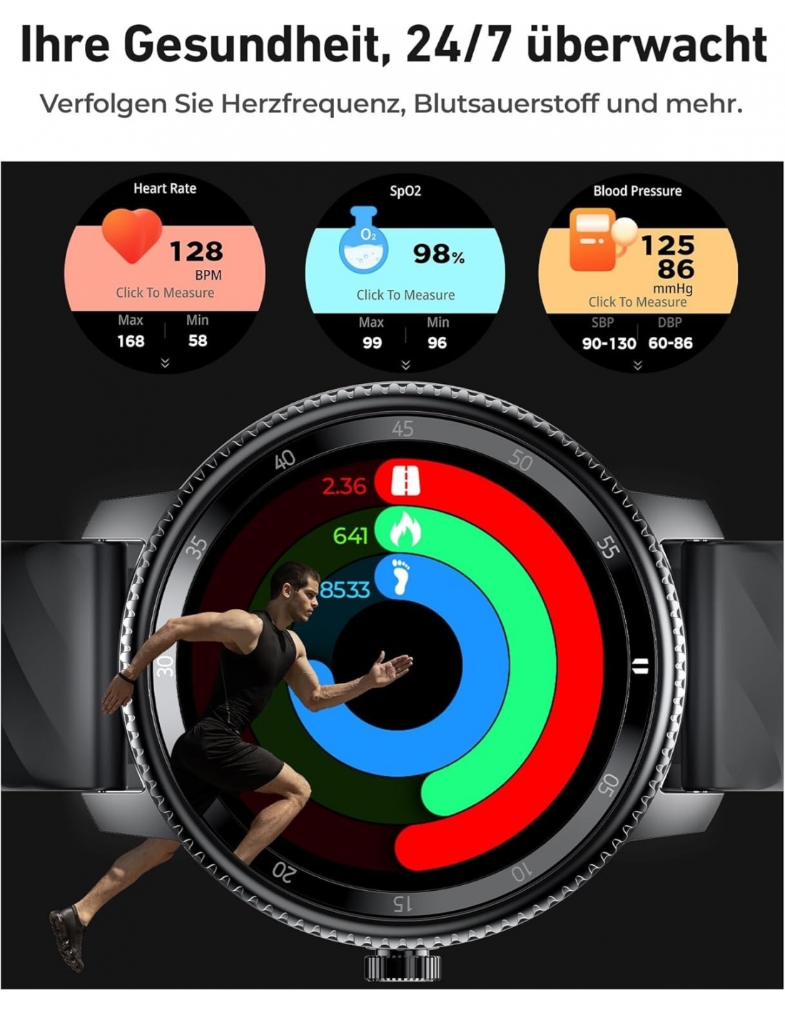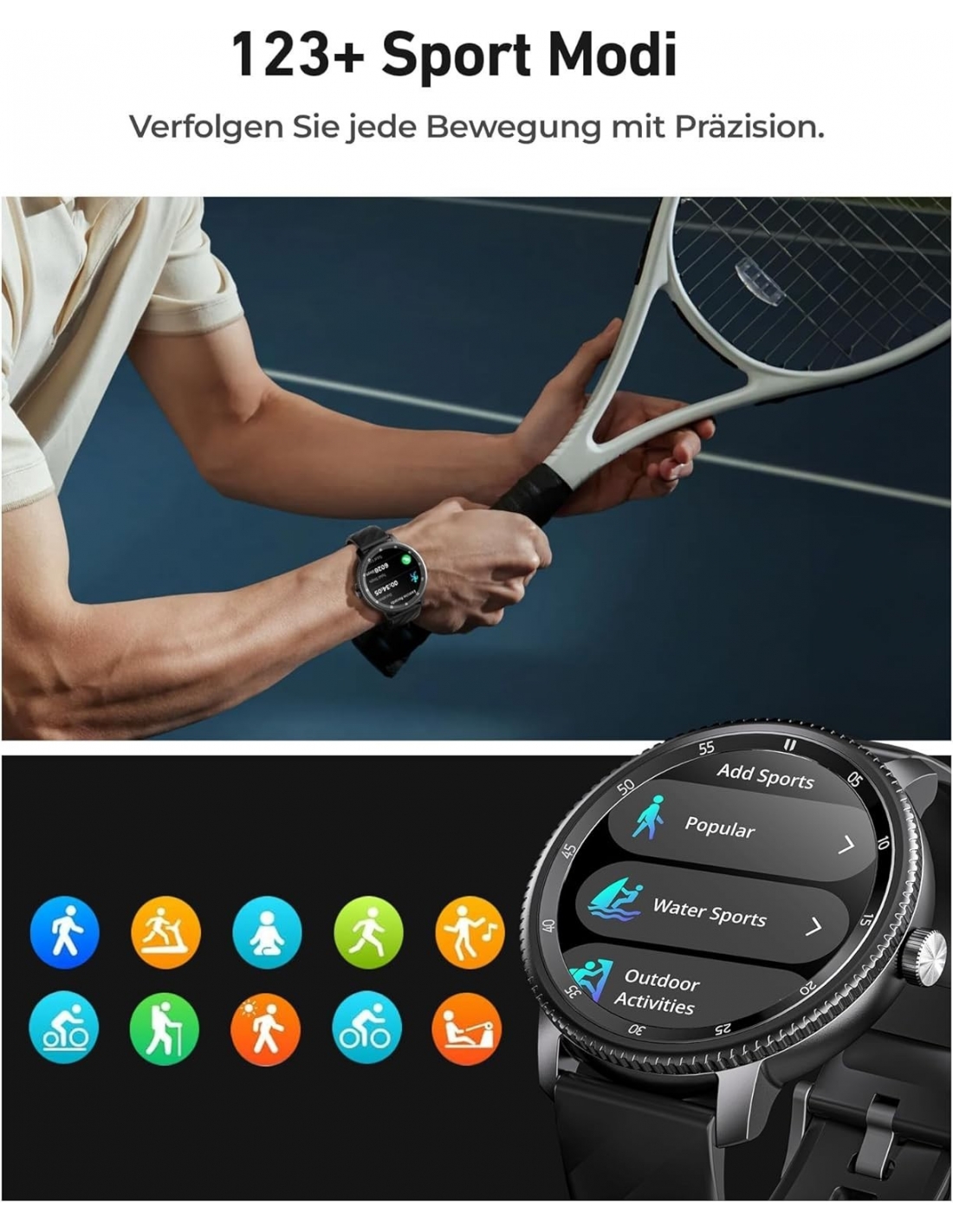 - 100+ modalità di allenamento - Lo smartwatch DV09 offre un'ampia gamma di modalità di allenamento con oltre 100 opzioni di allenamento indoor e outdoor, tra cui camminata, corsa, ciclismo, salto della corda, basket, calcio, badminton e nuoto. Grazie ad algoritmi precisi, l'orologio è in grado di registrare accuratamente passi, calorie, distanza e frequenza cardiaca per aiutarvi a scegliere la modalità di allenamento più adatta a raggiungere qualsiasi obiettivo di fitness. I cinturini in pelle composita e in silicone antistatico consentono di passare liberamente dall'uno all'altro per adattarsi ai propri outfit quotidiani, rendendoli eleganti e confortevoli.