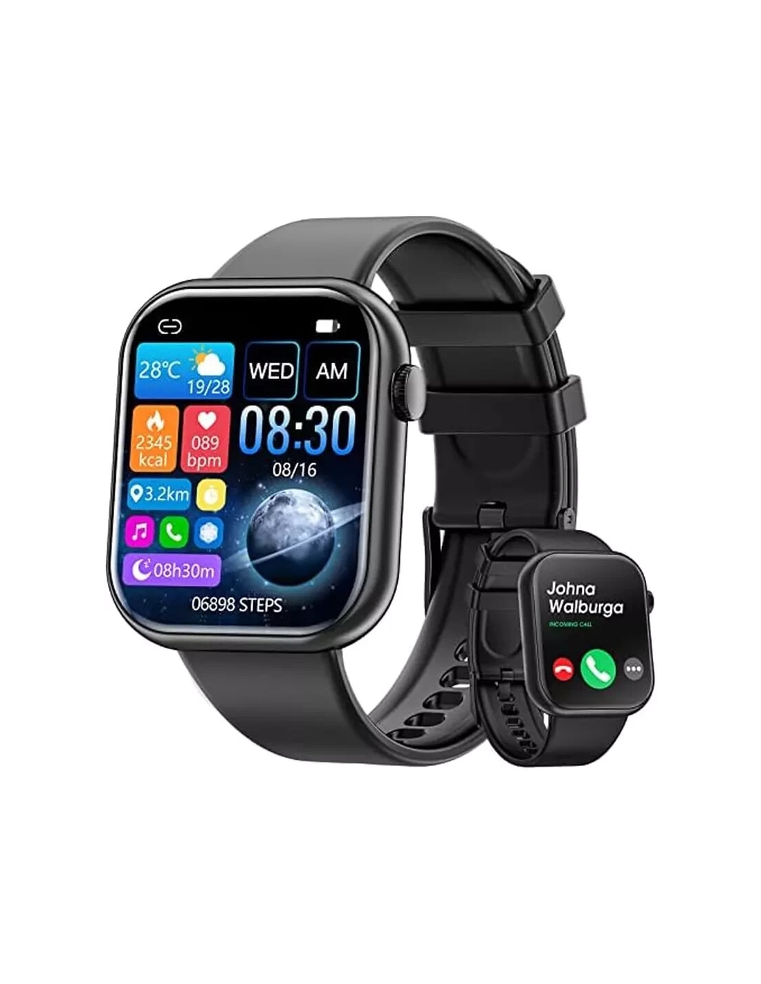 - Smart watch con microfono e altoparlante integrati, basta collegare il telefono una volta tramite Bluetooth, è possibile rispondere ed effettuare facilmente chiamate e ricevere informazioni sul telefono cellulare e notifiche dell'applicazione. Quando ti alleni, ti alleni o lavori, tocca la funzione di attivazione vocale dell'orologio per riprodurre la musica. Il canto dell'orologio è altrettanto accattivante.