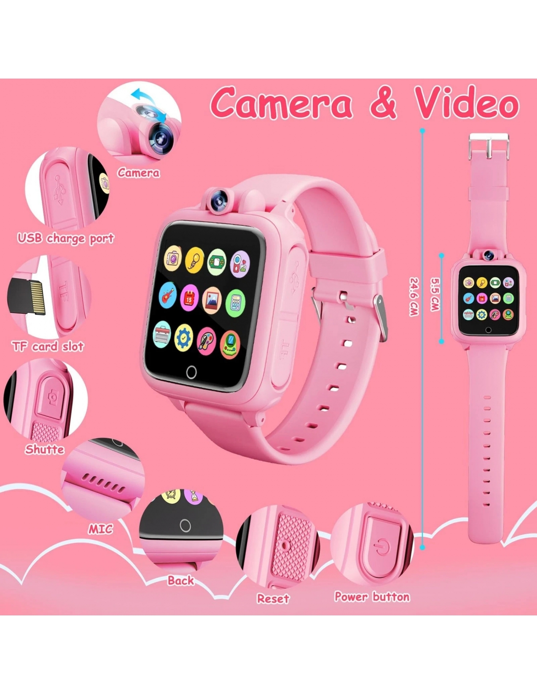 - 🎁【Regali per Ragazzi e Regali per Ragazze】 Questo smartwatch per bambini è realizzato in materiale ABS di alta qualità, privo di sostanze nocive, sicuro e non tossico, è un giocattolo perfetto per ragazzi e ragazze dai 3 ai 14 anni! Ottima scelta regalo per bambini, come regali per feste di compleanno, regali pasquali, regali per bambini, regali di Halloween, regali di Natale, regali per il ritorno a scuola e altro ancora.