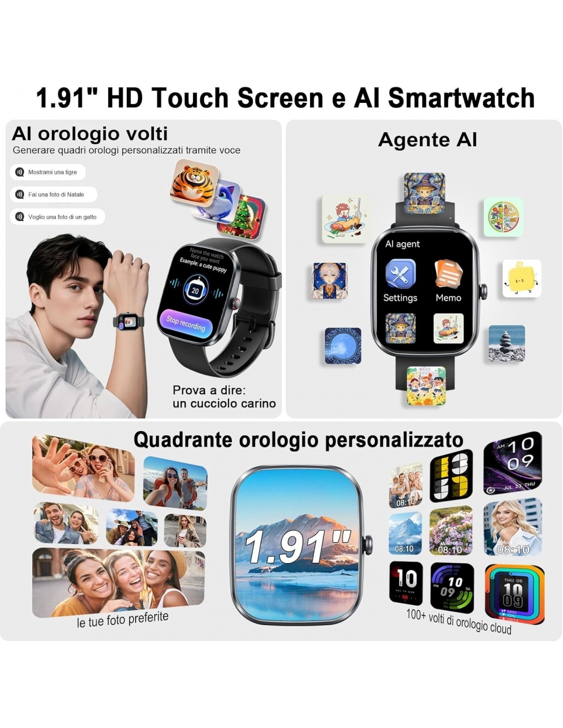 【Schermo intelligente HD da 1.91 pollici × Quadrante personalizzato con AI】 Questo smartwatch è dotato di un display HD da 1.91 pollici, con rivestimento anti-impronta digitale. i colori sono vivaci e nitidi, e la risposta del touchscreen è veloce e precisa. puoi caricare le tue foto per creare un quadrante esclusivo, o lasciare che l'AI generi Quadrante personalizzato secondo i tuoi gusti. Questo orologio uomo donna, è facile trovare l'opzione che si abbina al proprio stile.