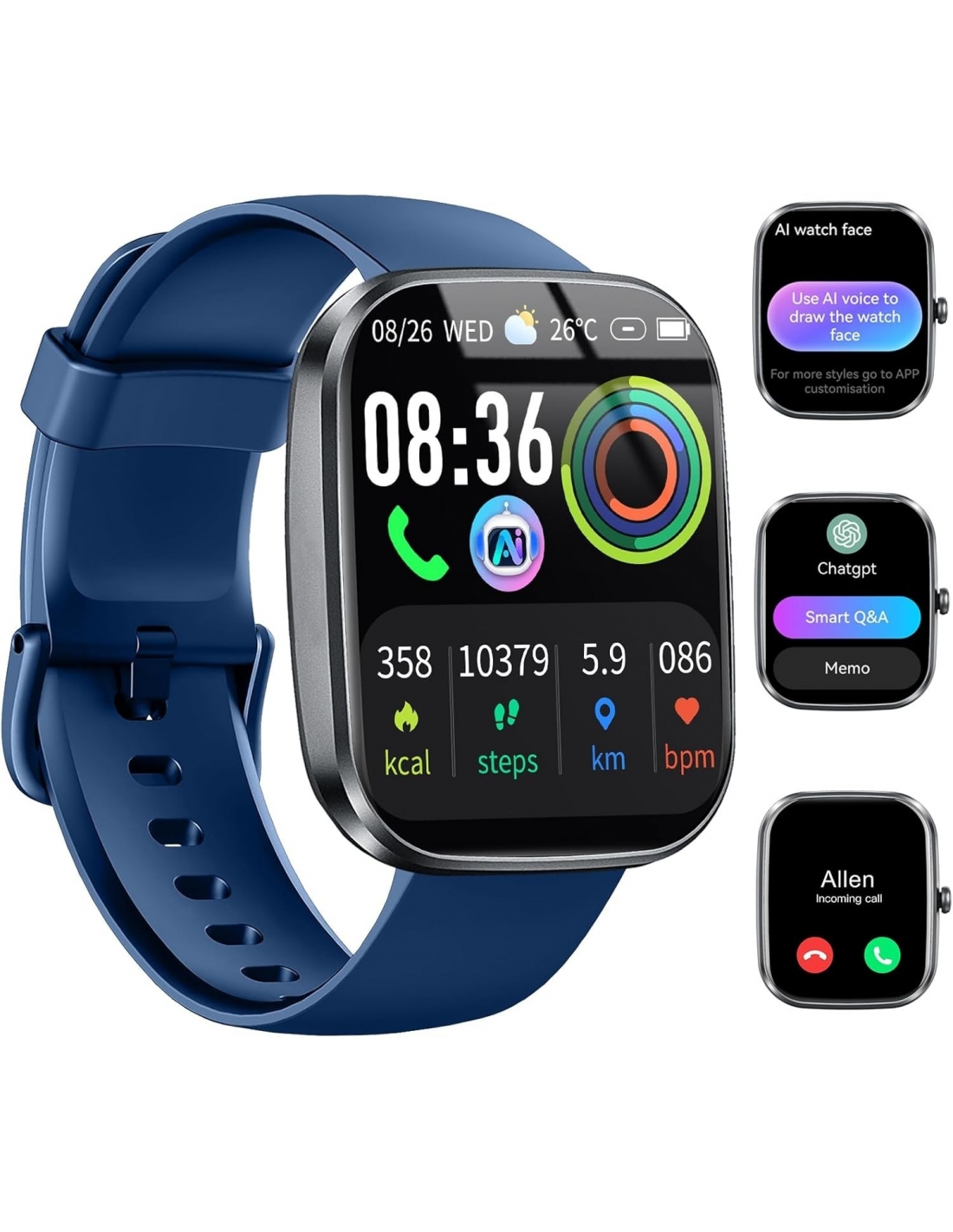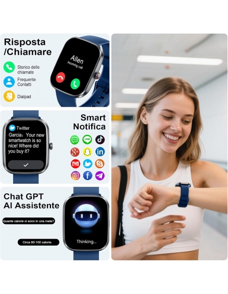 UAUE T60 Smartwatch Uomo Donna, 2025 Nuova Fitness Tracker Orologio con Voce AI/Quadrante AI, Chiamate Bluetooth/Cardiofrequenzimetro/Contapassi/Sonno/115+ Sportive, 1.91" Smart Watch Impermeabile IP68