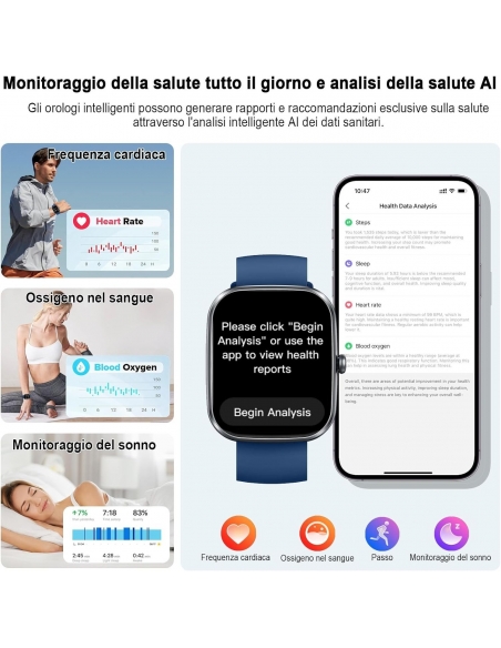 【Schermo intelligente HD da 1.91 pollici × Quadrante personalizzato con AI】 Questo smartwatch è dotato di un display HD da 1.91 pollici, con rivestimento anti-impronta digitale. i colori sono vivaci e nitidi, e la risposta del touchscreen è veloce e precisa. puoi caricare le tue foto per creare un quadrante esclusivo, o lasciare che l'AI generi Quadrante personalizzato secondo i tuoi gusti. Questo orologio uomo donna, è facile trovare l'opzione che si abbina al proprio stile.