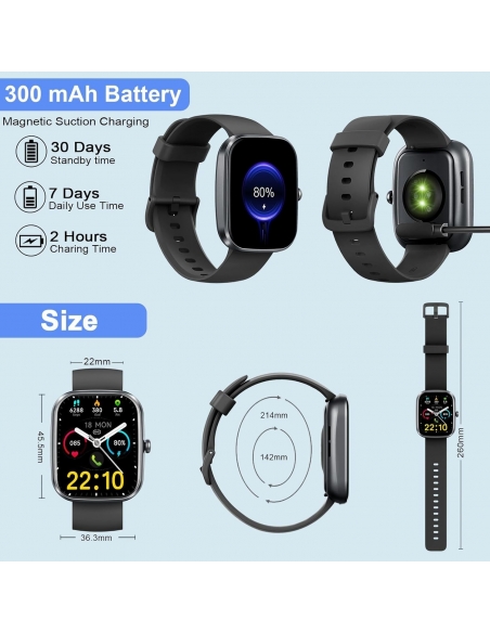 - Notifica chiamate e messaggi Bluetooth: gli orologi intelligenti per donne e uomini con microfono HD integrato e altoparlante, dopo il collegamento al telefono tramite Bluetooth possono ricevere ed effettuare chiamate direttamente dal tuo orologio. Puoi anche sincronizzare le informazioni di contatto sul tuo telefono, tenerti in contatto con la famiglia o gli amici in qualsiasi momento. L'orologio fitness supporta anche la notifica dei messaggi (WhatsApp, Facebook, Instagram, Twitter, Skype, Line, ecc.). Tutte le notifiche vengono visualizzate sul polso e ricordate dalla vibrazione.