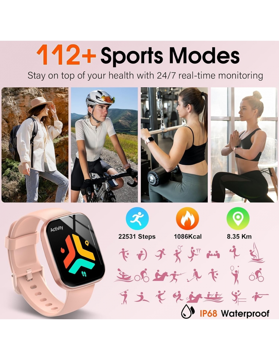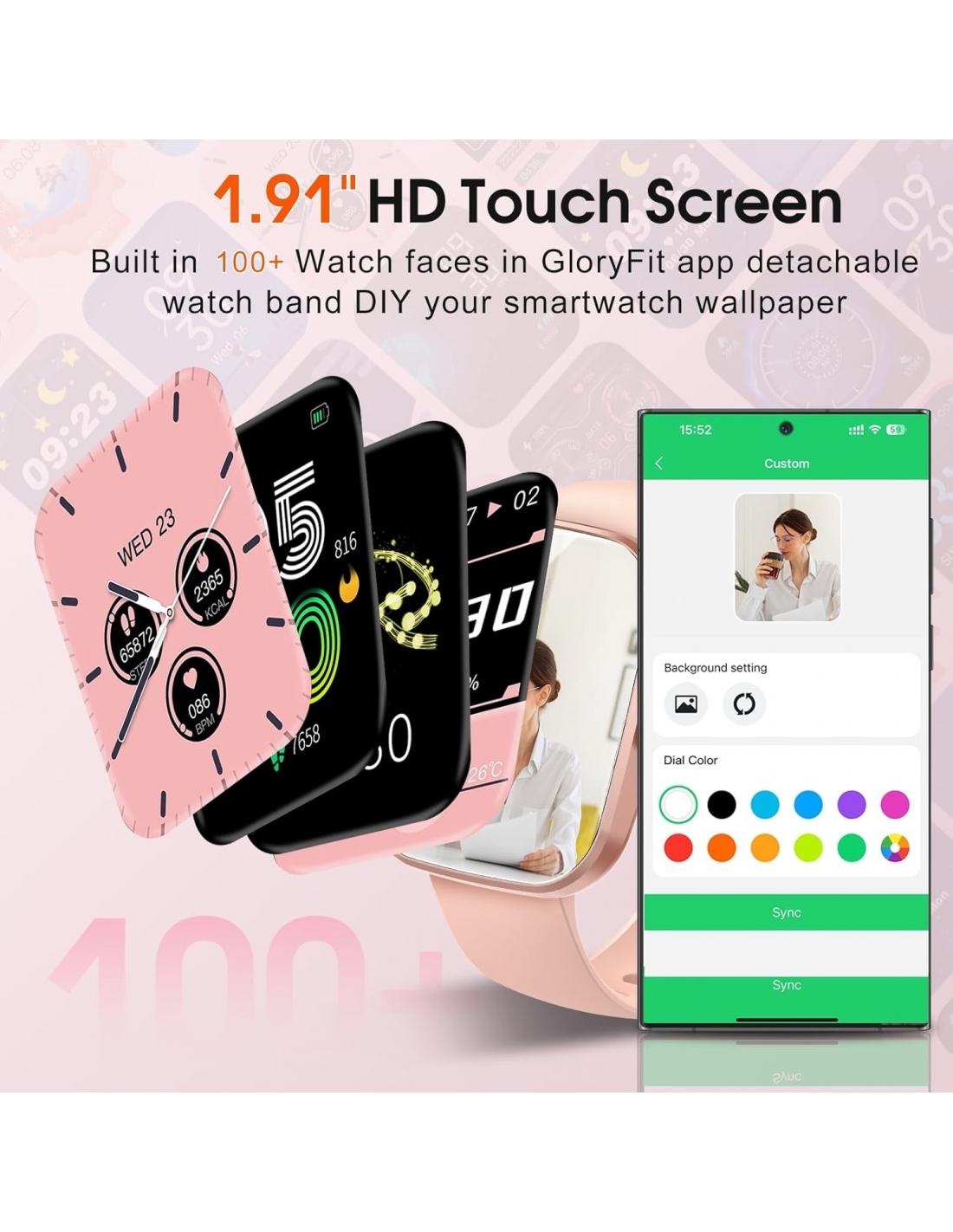 Csasan T70 Smartwatch Donna con Effettua/Risposta Chiamate, 1.91'' HD Orologio Smartwatch con Cardiofrequenzimetro Sonno Contapasso, 110+ Sportive Orologio Fitness, IP68 Smart Watch per iOS/Android