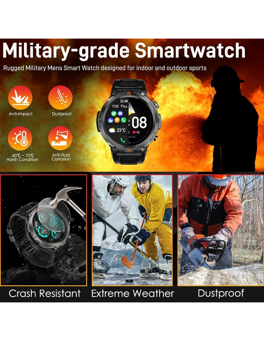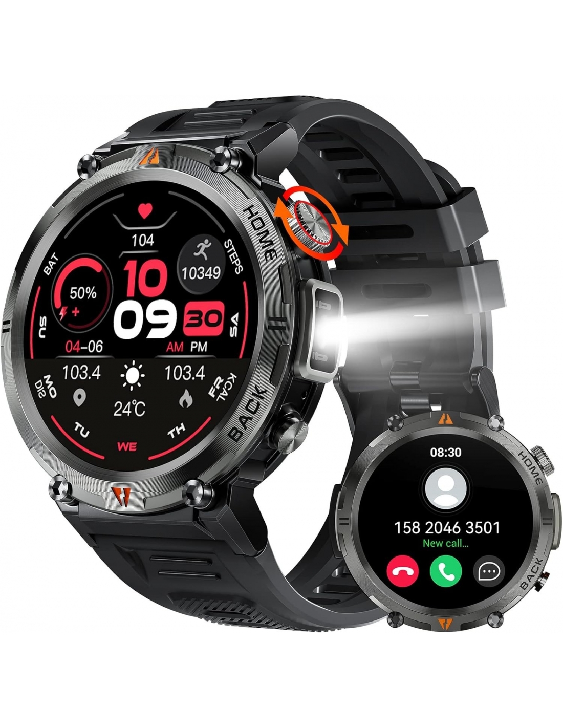 EIGIIS KE3 Smartwatch Uomo con Chiamata e Risposta 1,45" HD Smart Watch Sportivo con Torcia LEDCardiofrequenzimetro Sonno Contapassi Notifiche Messaggi Militare Orologio Fitness Tracker perAndroid iOS