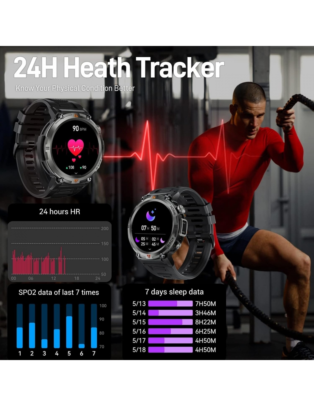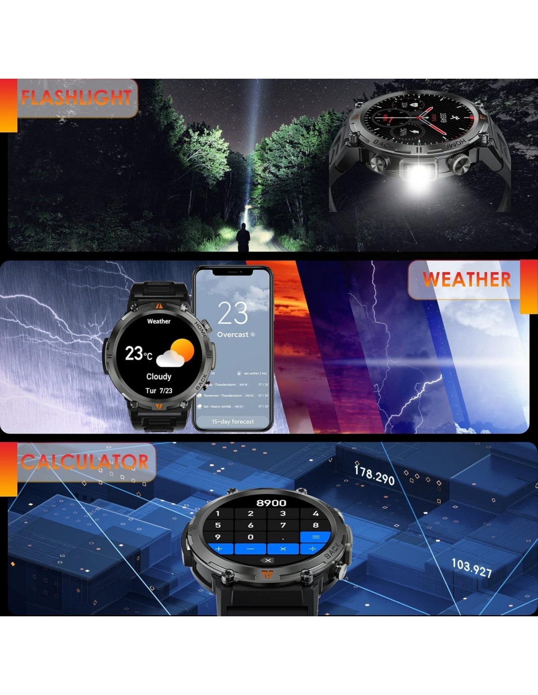 - 【Smartwatch militare uomo】- La cassa dello smartwatch militare uomo EIGIIS è realizzata in metallo di grado militare con un retro testurizzato in materiale stampato bicolore. Ha superato numerosi test di tipo militare, come la resistenza alle temperature estreme, alla bassa pressione e alla polvere, per essere utilizzato in condizioni ambientali difficili. Lo smartwatch da uomo EIGIIS è dotato anche di una torcia sul lato, così non avrete più paura del buio ed è progettato per l'aria aperta!