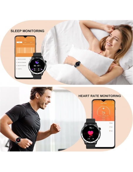 1.43" HD Schermo AMOLED Completamente Touch e 100+ Quadrante Personalizzato: Lo orologio smartwatch uomo donna è dotato di un HD touchscreen AMOLED da 1,43 pollici con una risoluzione di 466 x 466, colori vivaci e luminosità regolabile offre una buona esperienza visiva in diversi ambienti. Ha 100+ tipi diversi di watch face all'App "FitCloudPro", oppure si può scegliere la propria foto per personalizzare un quadrante unico che esprima il proprio stile.