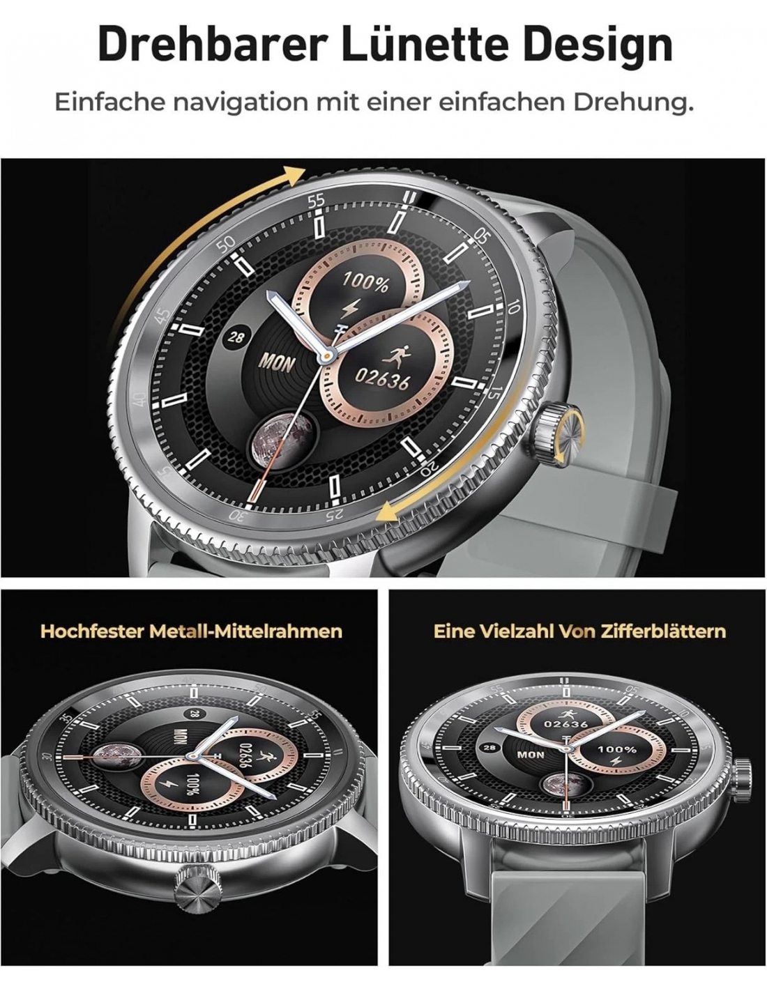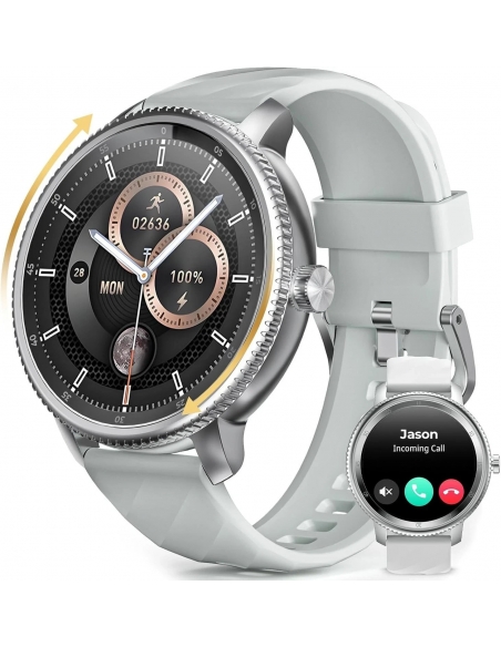 - Design Funzionale Della Corona - Lo smartwatch DV09 è caratterizzato da un design unico della corona in lega di zinco che consente di utilizzare l'orologio in modo facile e fluido con una semplice rotazione. Toccando due volte la corona si accede rapidamente all'ampio menu delle funzioni e ruotandola si può navigare facilmente nell'elenco e trovare la funzione desiderata. Con oltre 200 stili di quadrante, tra cui design dinamici e interattivi e opzioni di visualizzazione statiche sempre attive, è possibile personalizzare l'orologio con una semplice rotazione della corona sulla pagina iniziale!