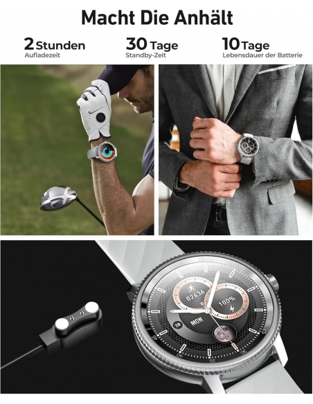 - Display Hd Grande E Luminoso - Watch DV09 è dotato di un display HD full-touch da 1,46 pollici con immagini chiare e vivide, risoluzione fine e PPI elevato per una lettura agevole in qualsiasi condizione di luce. È possibile regolare la luminosità dello schermo in qualsiasi momento attraverso la barra di stato per adattarsi ai diversi ambienti. Per garantirvi il massimo comfort nell'uso quotidiano, abbiamo appositamente migliorato la durata della batteria, con un design di ricarica magnetica, in modo che l'orologio continui a funzionare per 7-10 giorni in condizioni di uso normale e vi accompagni in qualsiasi momento.