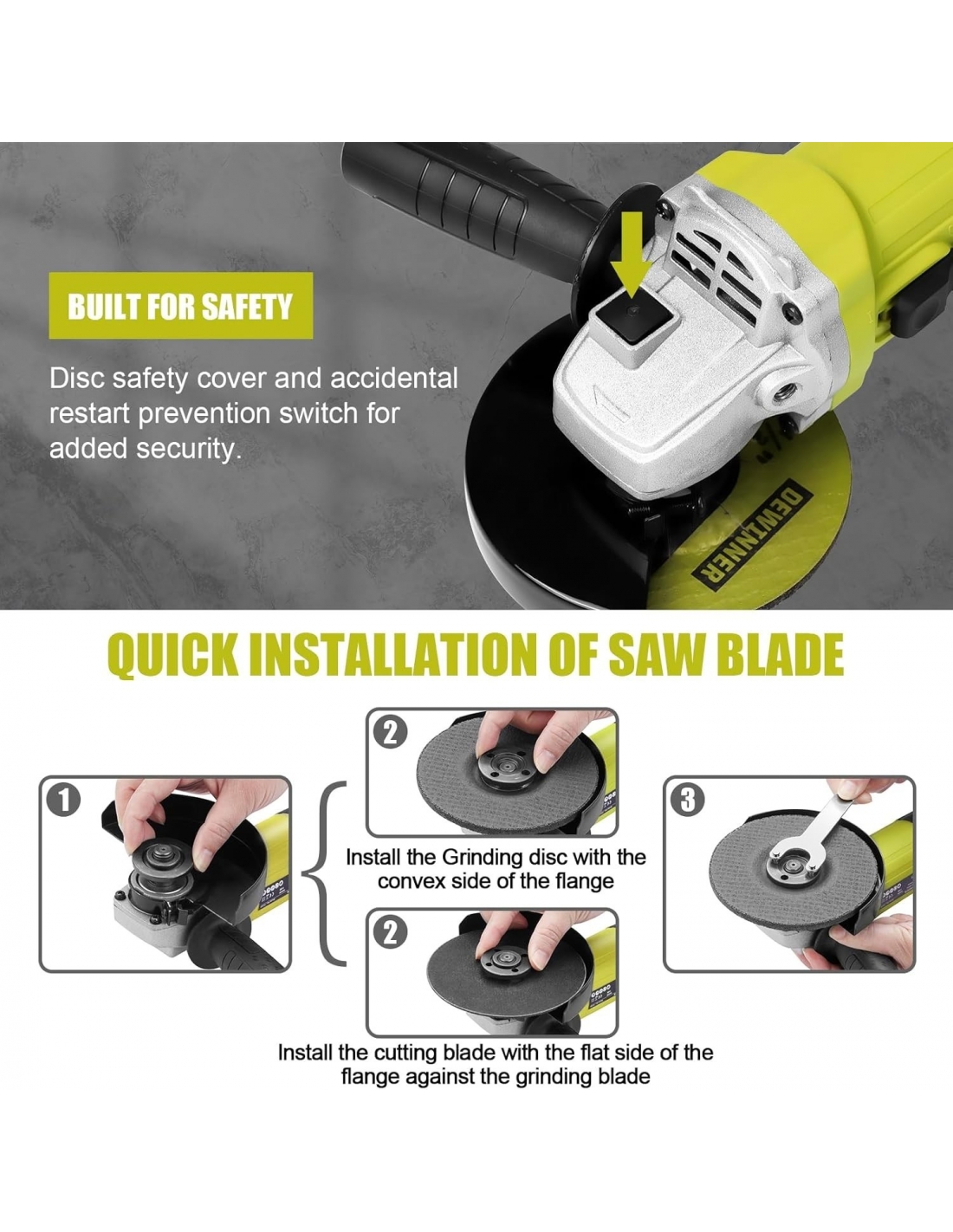 - 【COSTRUITO PER LA SICUREZZA】copertura di sicurezza del disco e interruttore di prevenzione del riavvio accidentale per una maggiore sicurezza.