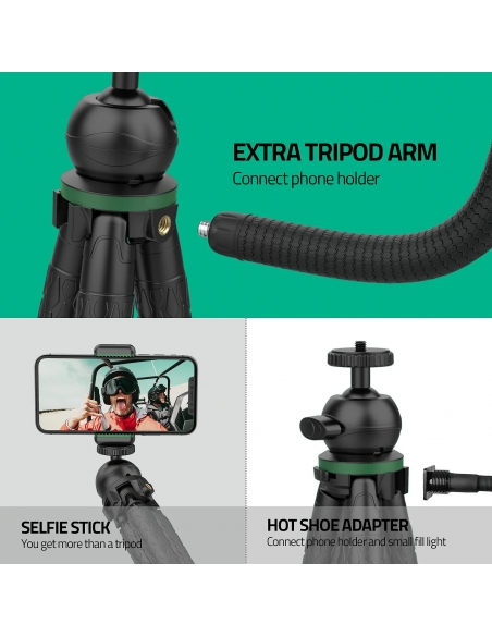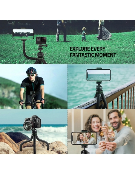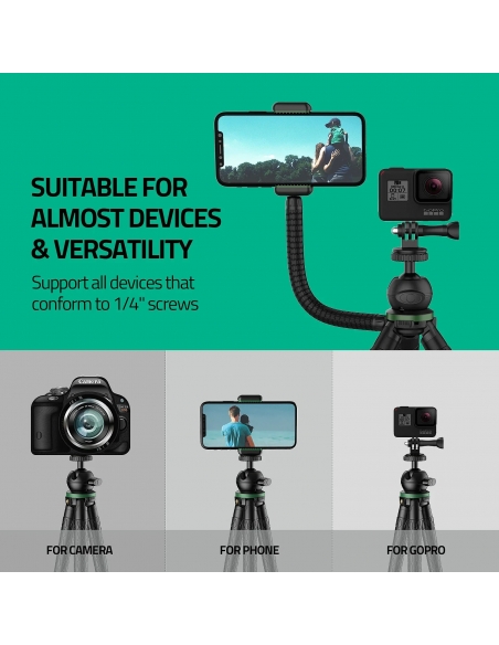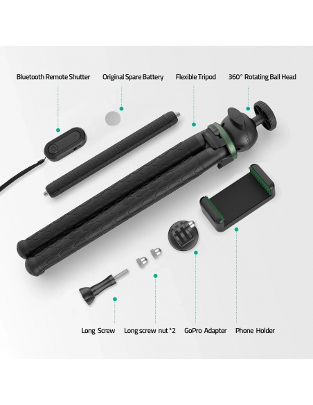 【24 Mesi Post-Vendita Senza Preoccupazioni】TECELKS fornisce un servizio di sostituzione di 24 mesi e un servizio post-vendita amichevole a vita per questo treppiede flessibile; Contenuto della confezione: mini treppiede flessibile *1, giunto sferico *1, clip per telefono *1, braccio treppiede extra *1, adattatore per fotocamera sportiva *1, telecomando Bluetooth *1, batteria di ricambio originale *1