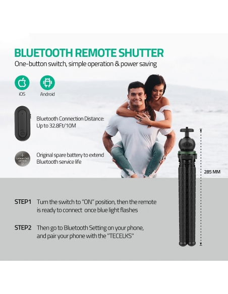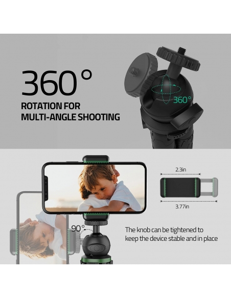 ✔【Super Compatibilità】: Funziona con tutti gli smartphone fino a 3,77" di larghezza, controlla a distanza il telefono per scattare foto a una distanza di 32,8 piedi/10 m tramite l'otturatore Bluetooth. Grazie alla filettatura universale da 1/4", è compatibile con DSLR , fotocamere sportive (compresi gli adattatori) e altri dispositivi.