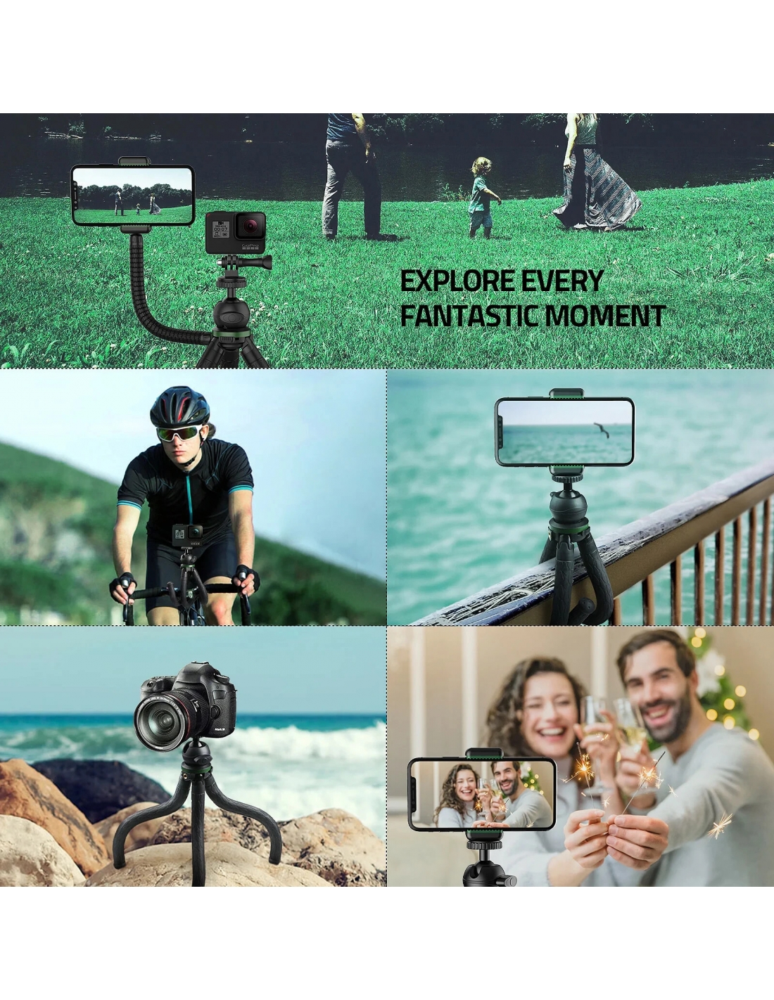 ✔ 【Doppia stabilità】: i cuscinetti in gomma antiscivolo possono aderire meglio alle superfici e piegare le gambe per mantenere la posizione in modo sicuro, garantisce foto chiare e di bell'aspetto senza vibrazioni, è particolarmente utile per foto e video ad alta quota.
