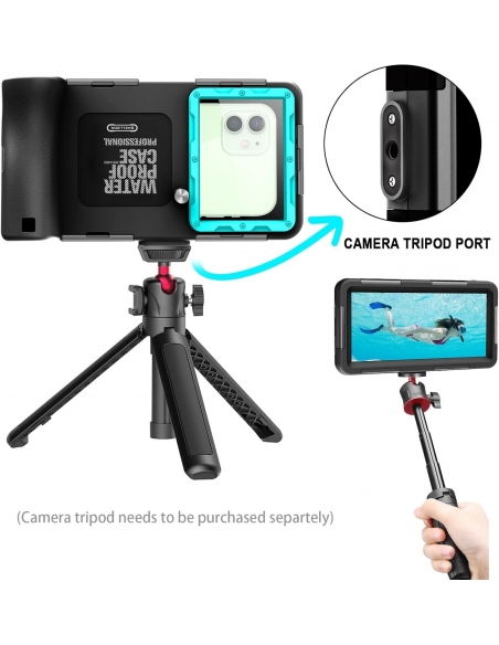 • Configurazione rapida: inserisci il telefono e chiudi la custodia. Tutto ciò che devi fare è accendere la fotocamera o il video prima di immergerti. La custodia impermeabile ha un design a "otturatore". Per catturare tutti i dettagli della tua avventura, premi direttamente il pulsante di scatto.