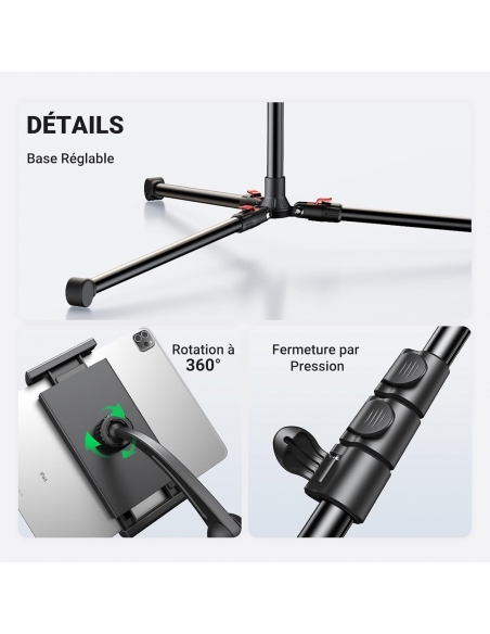 UGREEN Supporto per treppiede per tablet, compatibile con iPhone 16 Plus Pro Max 15 14 13 12 11, iPad Pro 12.9 10.9 Air 2022, iPad Mini, Galaxy Tab A9 S9 A8