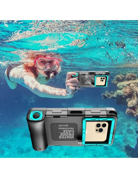 - Configurazione rapida: inserisci il telefono e chiudi la custodia. Tutto ciò che devi fare è accendere la fotocamera o il video prima di immergerti. La custodia impermeabile ha un design a "otturatore". Per catturare tutti i dettagli della tua avventura, premi direttamente il pulsante di scatto.