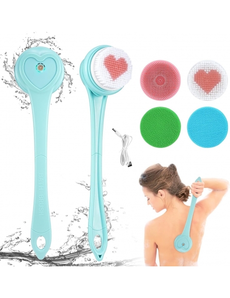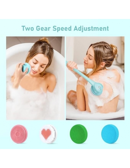 La spazzola elettrica per il corpo della doccia ha due modalità di velocità regolabili e 4 testine, la testina è morbida e comoda al tatto, può essere utilizzata con detergente o gel doccia per rimuovere lo sporco, offrendo una gamma completa di pulizia e massaggio.