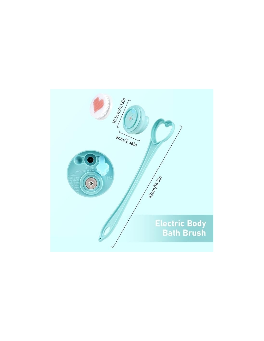 Il manico lungo 16,5 pollici è progettato ergonomicamente per una facile presa e può aiutarti a pulire la schiena e i punti difficili da raggiungere. Non solo puoi usarlo per pulire la schiena, ma puoi anche rimuovere il manico e usarlo come una spazzola per la pulizia del viso per pulire il viso. Il gancio per appendere nella parte inferiore della spazzola elettrica per il corpo è progettato per facilitare la conservazione della spazzola da bagno.