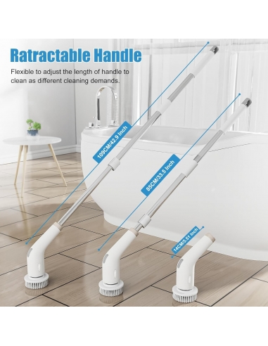 - GeeSoul Electric Spin Scrubber dotato di manico estensibile e staccabile in acciaio inossidabile. Le maniglie estensibili possono essere regolate da 40 a 95 cm, il che aiuta a non piegarsi per scopi di pulizia. La dimensione del pennello: 21 * 11 * 6,2 cm (escluse il manico e la testina). È leggero, il che rende l'intero processo molto più confortevole ed efficiente.