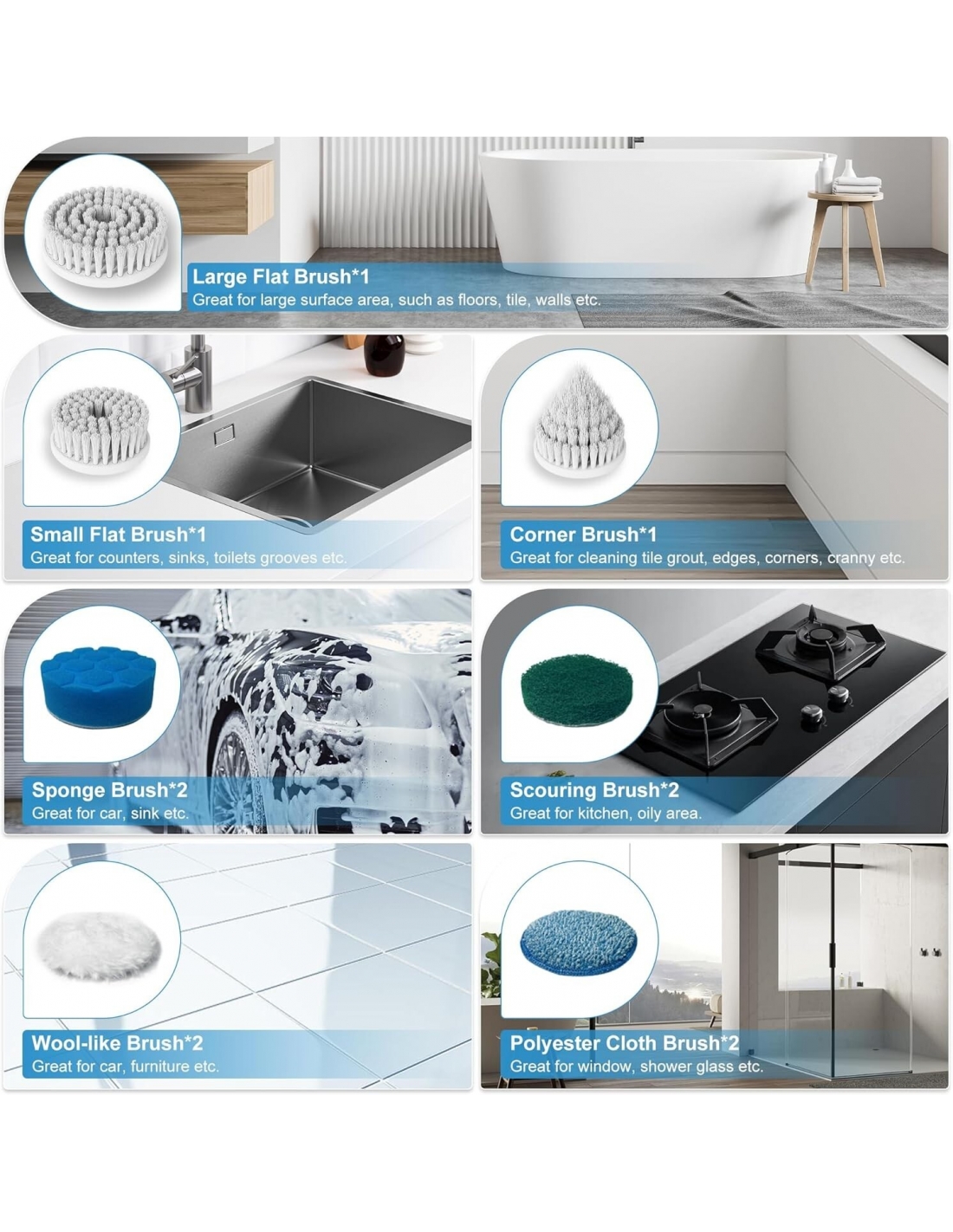 GeeSoul Spazzola elettrica rotante 13in1 2 velocità Bagno Doccia WC Cucina