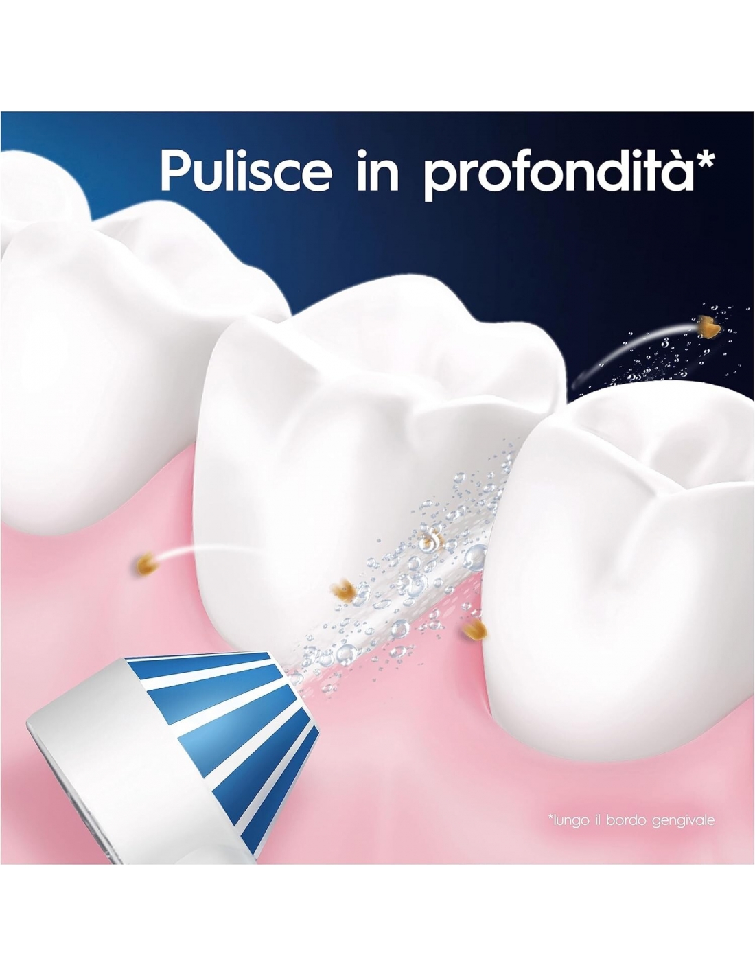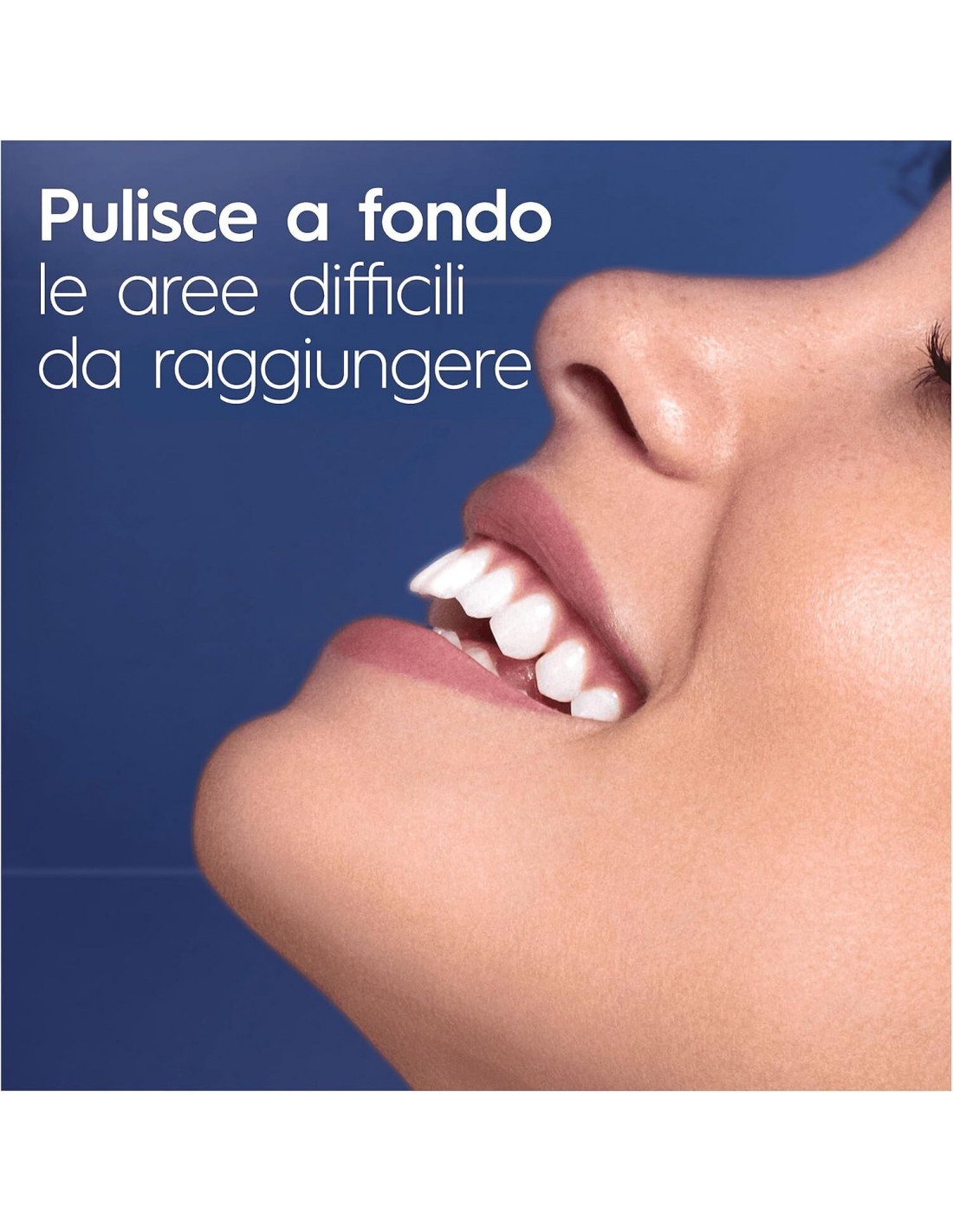 - Pulisce in profondità tra i denti e purifica sotto il bordo gengivale
