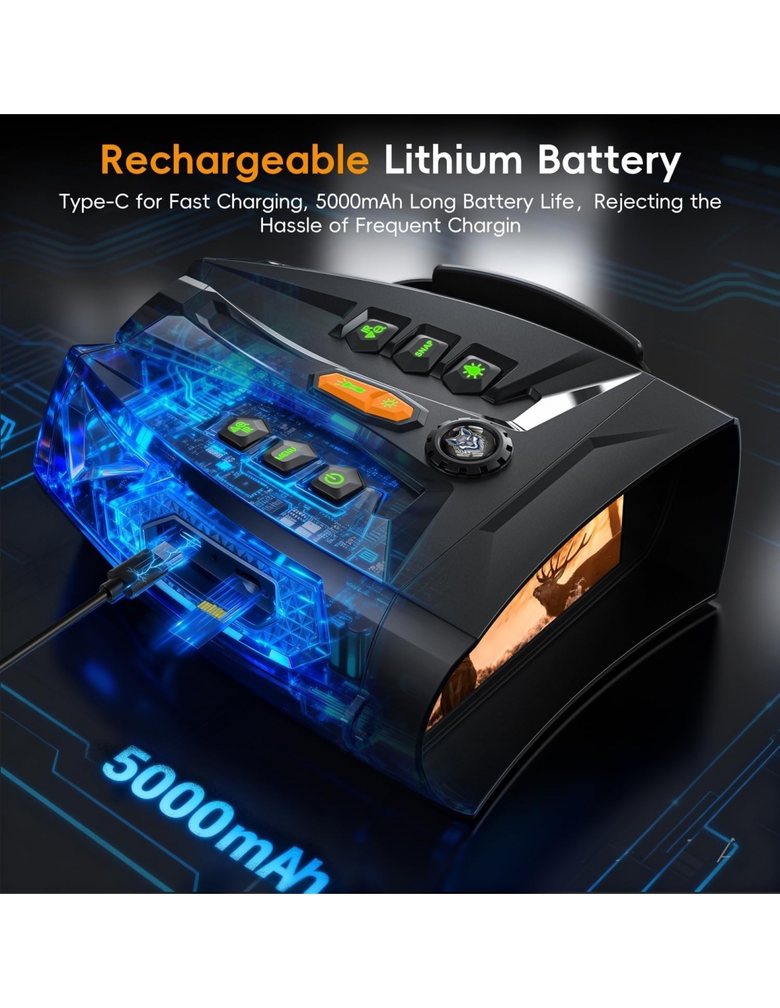 - 【Zoom digitale 10x】 La tecnologia ottica avanzata offre video e foto nitidi a 1080P e supporta lo zoom digitale 10x. La batteria ricaricabile ad alta capacità da 5000 mAh offre un'autonomia prolungata, consentendo di godere fino a 18 ore di registrazione continua senza ricariche frequenti. Il cinturino da polso in nylon elastico dal design ergonomico e montato lateralmente garantisce una vestibilità sicura, mentre il supporto per treppiede integrato nella parte inferiore consente una configurazione stabile e una visione a mani libere.