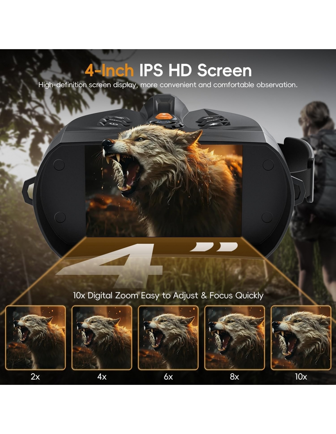 - 【Uso giorno/notte】 Questi visori non sono solo visori notturni, sono anche binocoli per la visione notturna. Disattiva gli infrarossi per l'uso diurno e attivali per l'uso notturno. Questi binocoli possono scattare foto, registrare video e riprodurli, consentendoti di catturare foto e video ad alta definizione in qualsiasi momento.