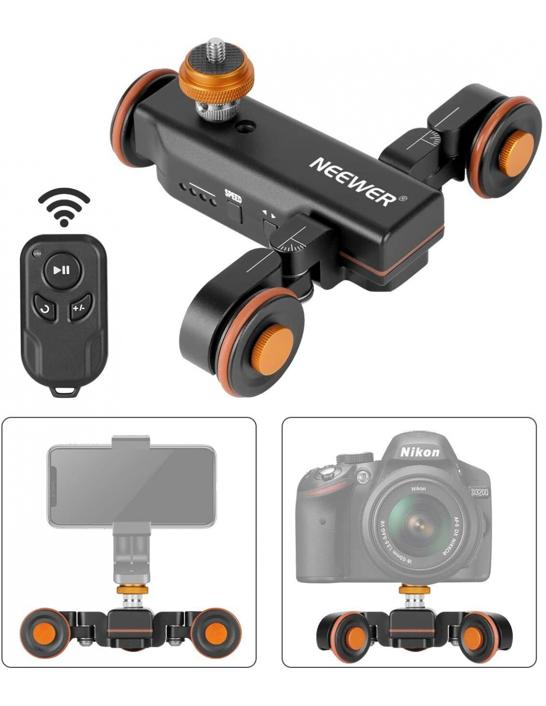 Neewer 3 Ruote Wireless Dolly Automatico per Videocamera, Carrello Elettrico Motorizzato di scorrimento con Telecomando, 3 Velocità Regolabili per Videocamera DSLR Gopro iPhone e Samsung Cellulari