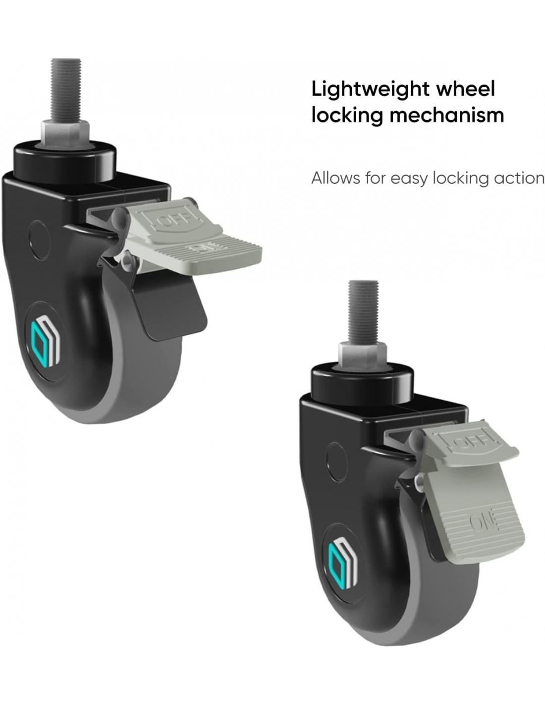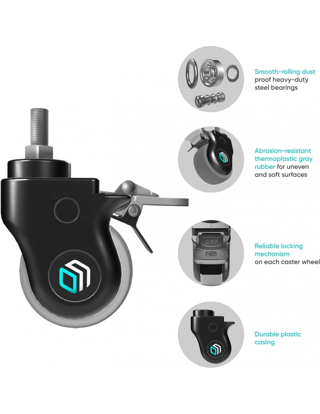 ONKRON Ruote per supporto TV Designer ⌀ 75 mm per supporto TV mobile TS1551, TS1552, TS1881, TS2771 con gomma elastica, doppio fissaggio, alloggiamento in plastica set da 4, AWL75 nero