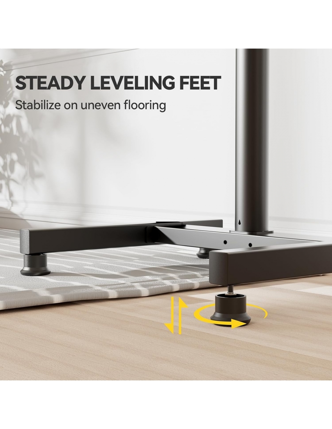 - Inclinazione flessibile di 30° e funzione di livello: con questo supporto TV da pavimento, non solo puoi inclinare facilmente il televisore verso l'alto di 30° per ridurre l'abbagliamento delle sorgenti luminose nella stanza, ma anche livellare di +/-3° dopo l'installazione per regolare la posizione dello schermo per un angolo di visione ideale.
