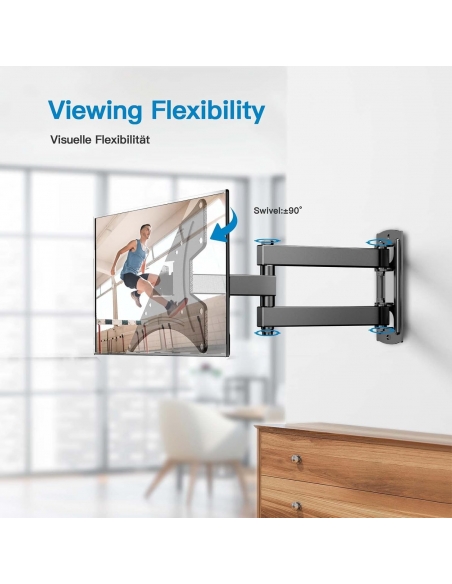 - Angolo di Visione Ottimale - Il nostro supporto tv parete universale è progettato con un'inclinazione di 5 ° in su e 15 ° in basso, un movimento di rotazione di 90 ° a sinistra o a destra per la massima flessibilità di visione. Scegliere l'angolo perfetto per visualizzare lo schermo dalla posizione migliore e più comoda nella stanza.