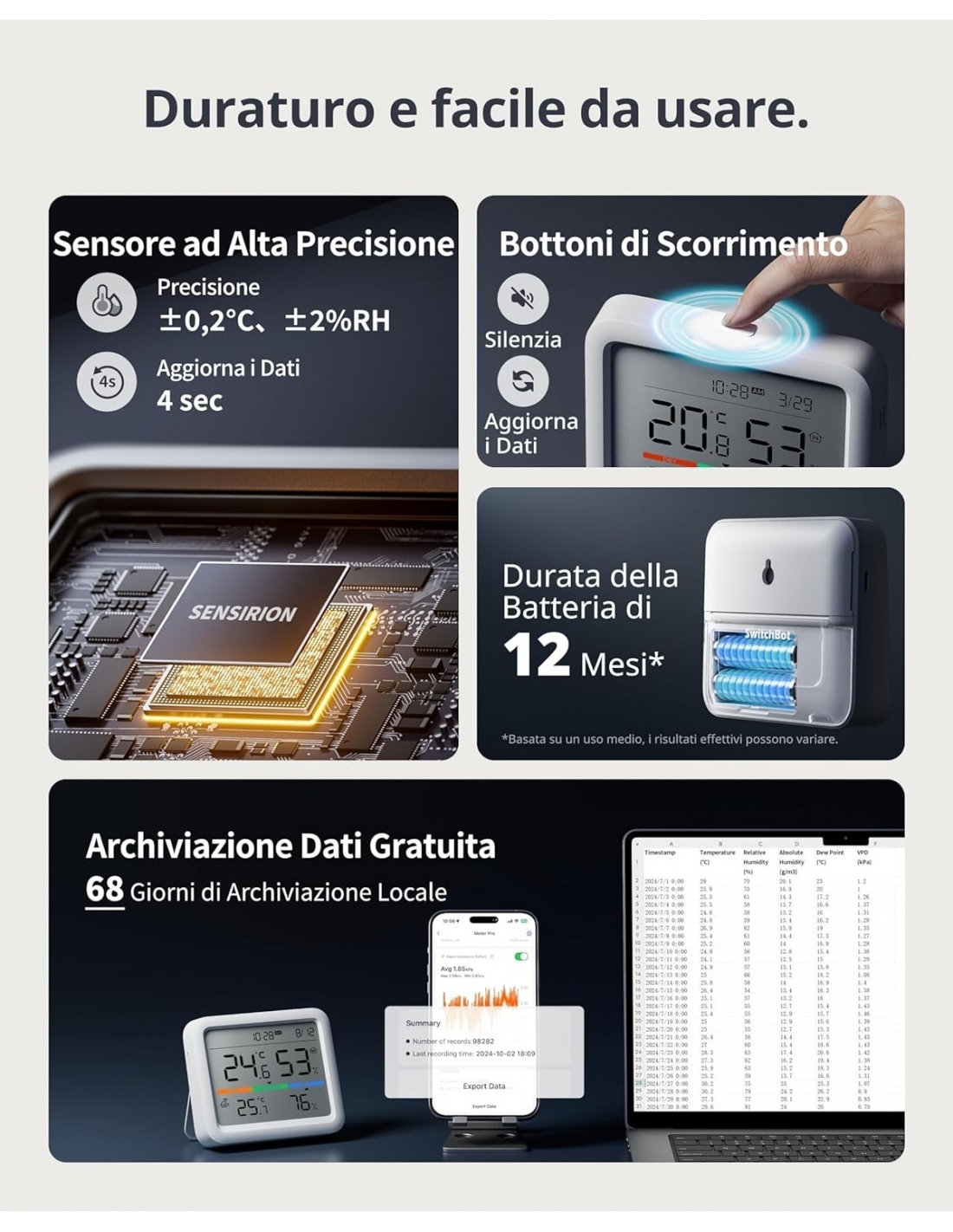 SwitchBot Meter Pro CO2 Termometro e Igrometro Bluetooth Monitor Temperatura/Umidità