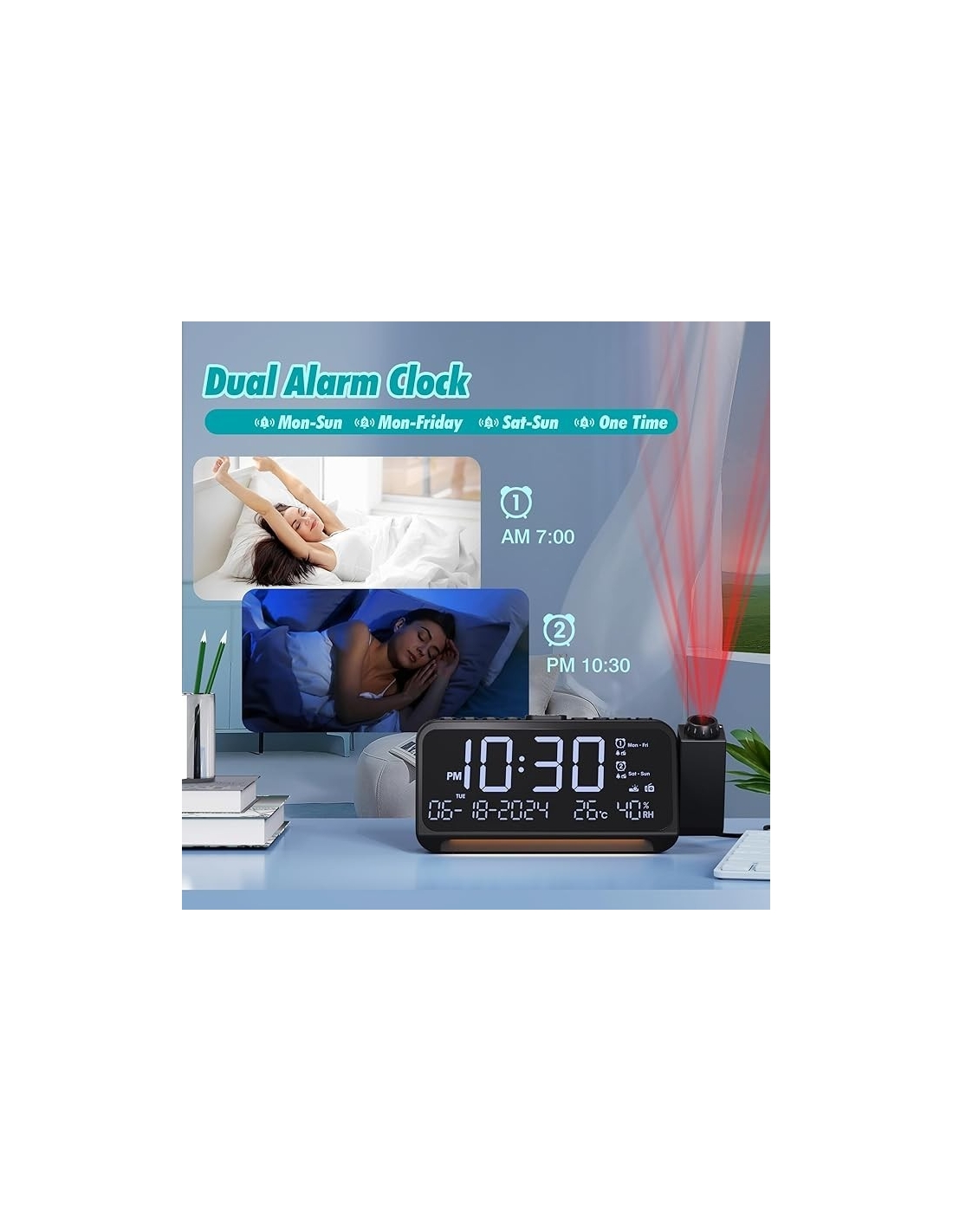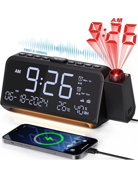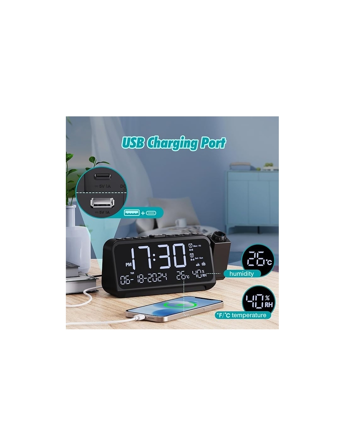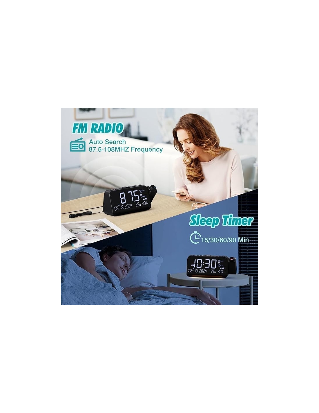 - 【Radio FM e comodo timer di spegnimento】Questa radiosveglia a proiezione può memorizzare fino a 20 stazioni FM (87,5 MHz-108,0 MHz), permettendoti di svegliarti con le tue canzoni preferite. Imposta la radio come sveglia e addormentati con trasmissioni rilassanti utilizzando il timer di spegnimento. La radio si spegnerà automaticamente dopo la durata selezionata (15-90 minuti), garantendo un sonno tranquillo con questa sveglia a proiezione per la camera da letto.