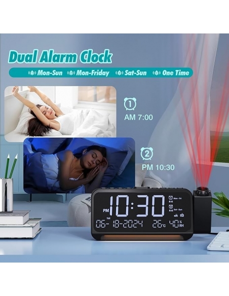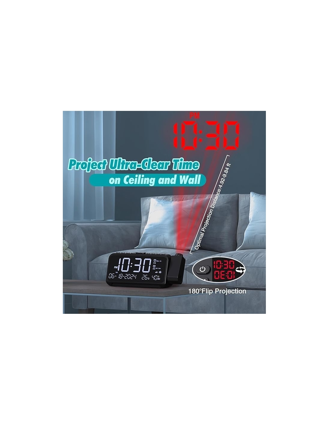 - 【Proiezione regolabile a 320° e display reversibile】Scopri la massima praticità con il nostro orologio con proiettore, dotato di un angolo di proiezione completamente regolabile a 320° e di un display reversibile a 180°. Di' addio al fastidio di svegliarti per controllare l'ora: rilassati mentre l'orologio digitale proietta l'ora in modo chiaro sul soffitto o sulla parete, permettendoti di rimanere comodamente a letto. Dotata di una sorgente luminosa a LED ad alta intensità e 5 livelli di luminosità, la chiarezza e la distanza della proiezione della sveglia si adattano perfettamente alle condizioni di illuminazione della tua stanza.