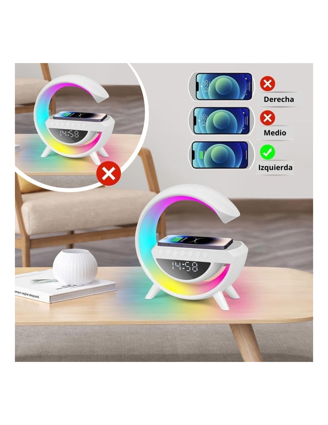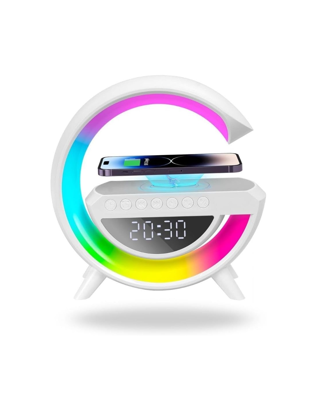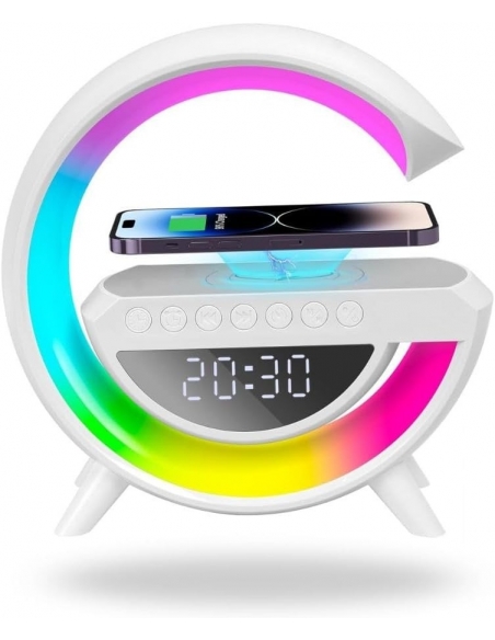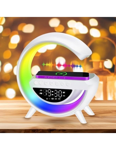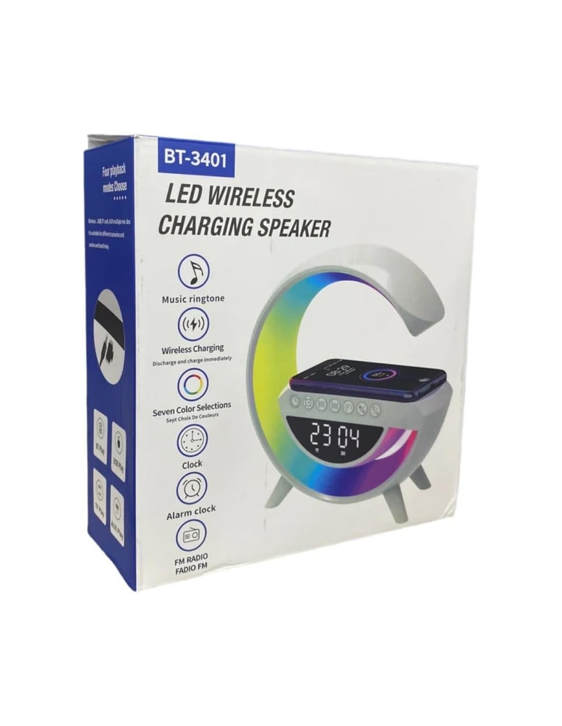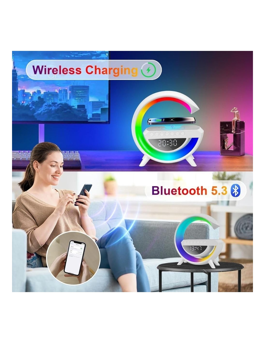 Sveglia Wireless BT-3401 con luce e altoparlante Bluetooth, lampada da tavolo LED intelligente con caricatore wireless, luce LED regolabile, luce notturna con sincronizzazione musicale