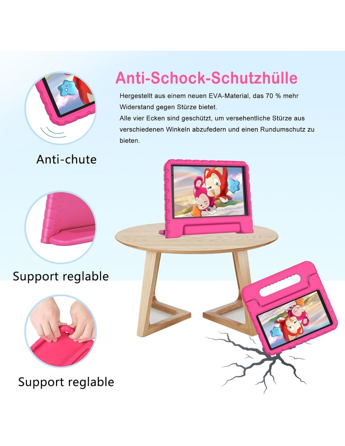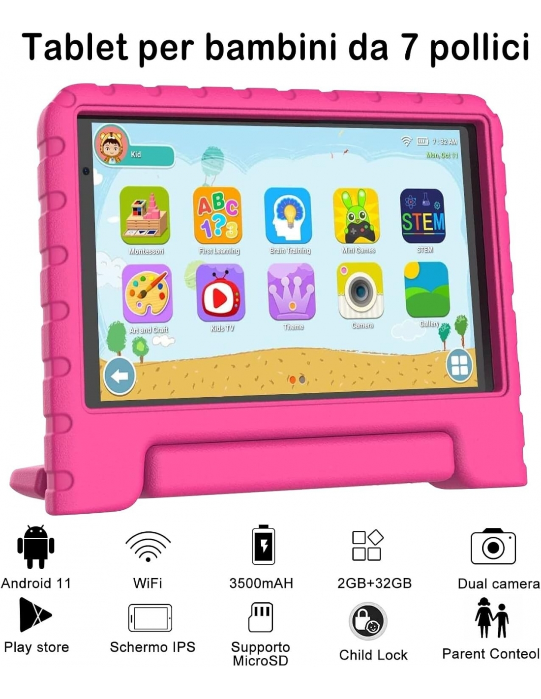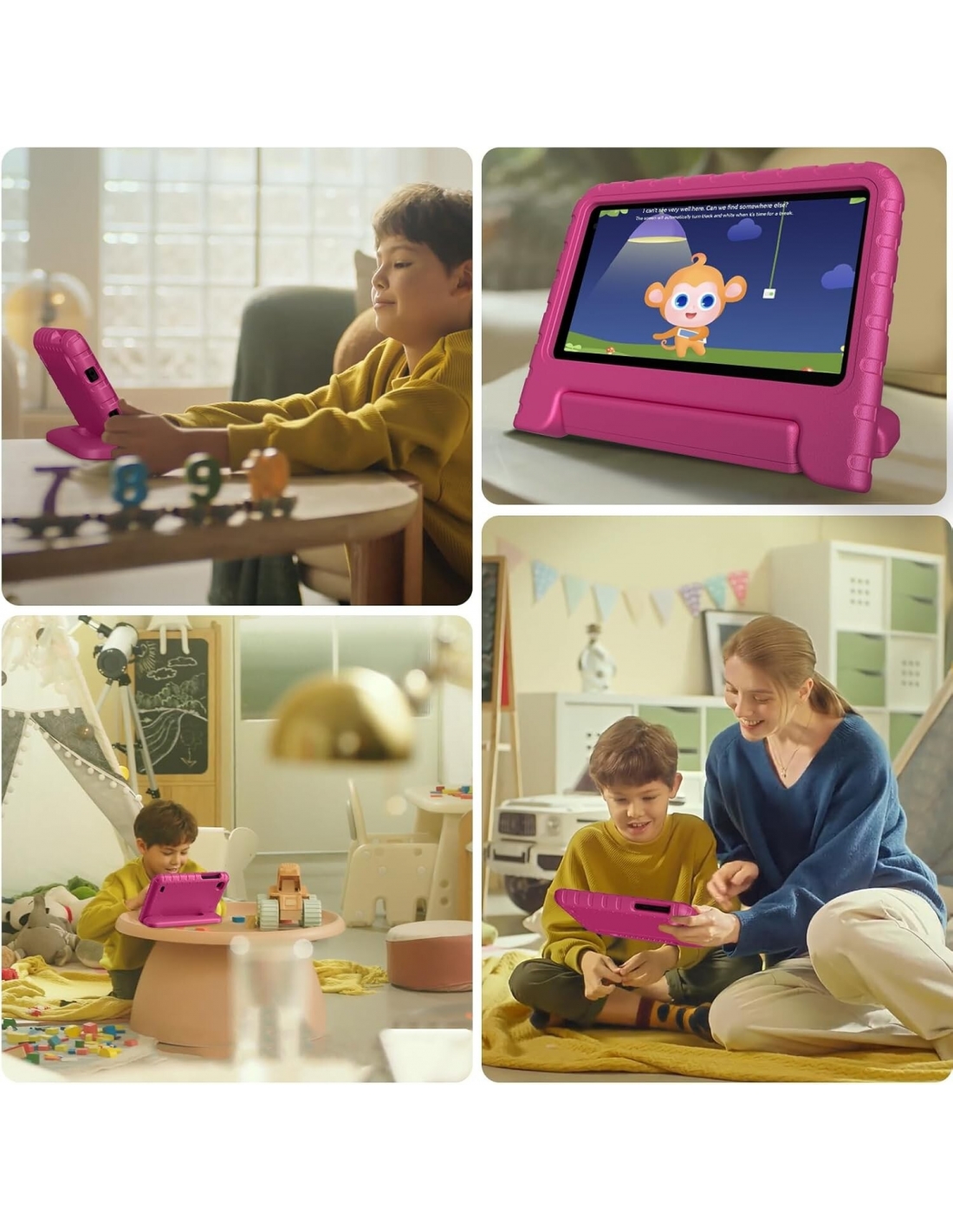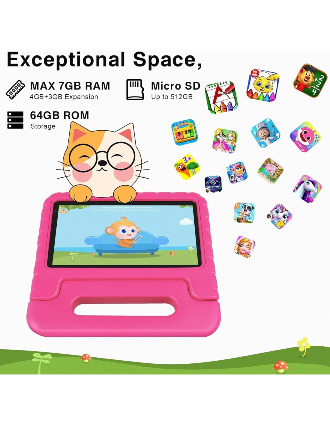 JUSYEA J8 Tablet bambini 64GB ROM 7" FHD Android 11 Pad WiFi 6 Play Store Fotocamera Doppia Sicurezza Bambini Eva Custodia protettiva Rosa