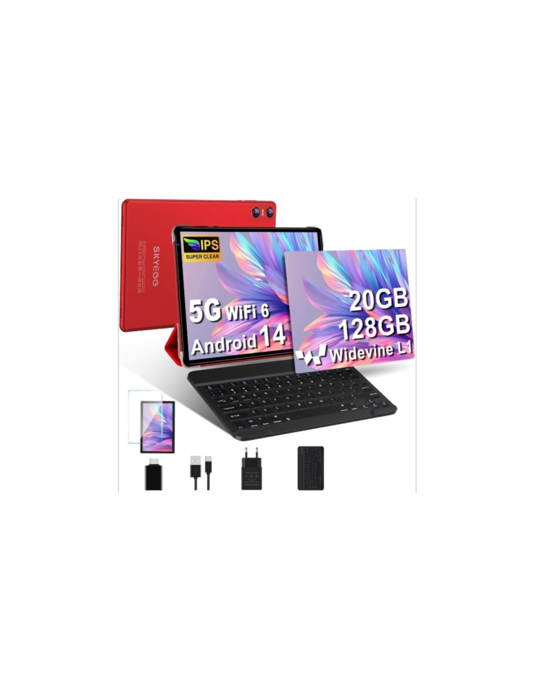 SKYEGG Tablet 10 Pollici Android 14, 20 GB RAM + 128 GB ROM(Espandibile Fino a 1 TB) Octa-Core 5G Wi-Fi 6 8MP + 5MP 6000mAh Widevine L1 USB-C Tablet con Tastiera + Custodia Rosso