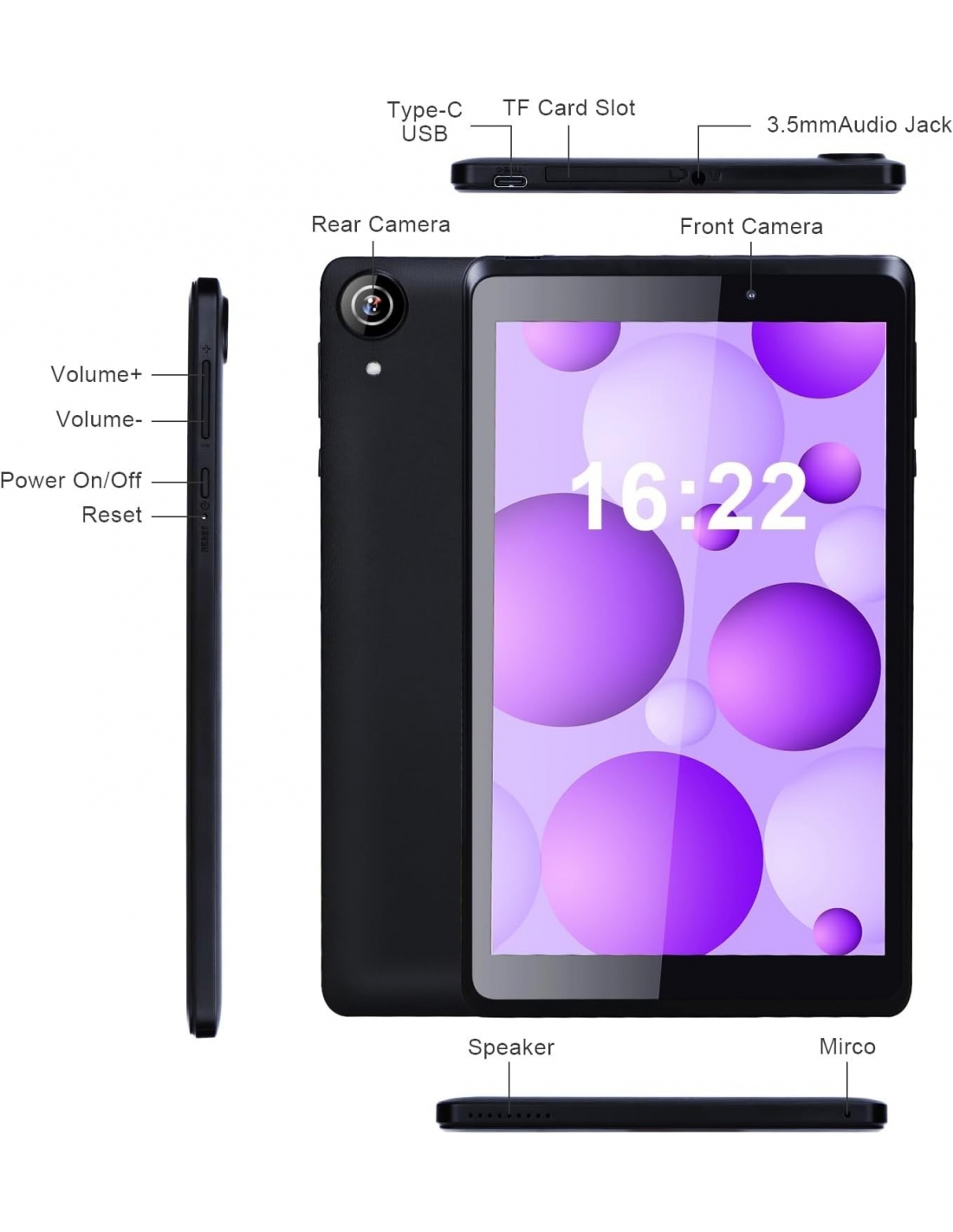 C idea CM826 Tablet 8"protezione schermo a luce blu Android 13 2GB Ram 32GB Rom (TF 1TB) Doppia fotocamera 2 MP+5 MP slot per scheda TF Doppio WiFi Tipo C Nero