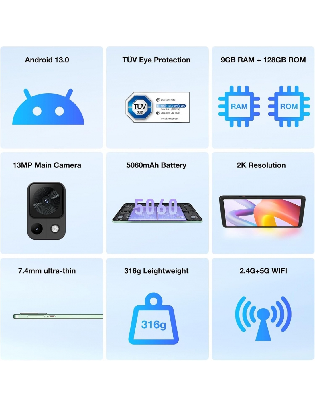 DOOGEE T20 Mini Tablet 8" 9GB RAM 128GB ROM 1TB 5060mAh Batteria Dual 4G LTE+ 2.4/5GHz WiFi 13MP+5MP Android 13 2,3K Con SIM