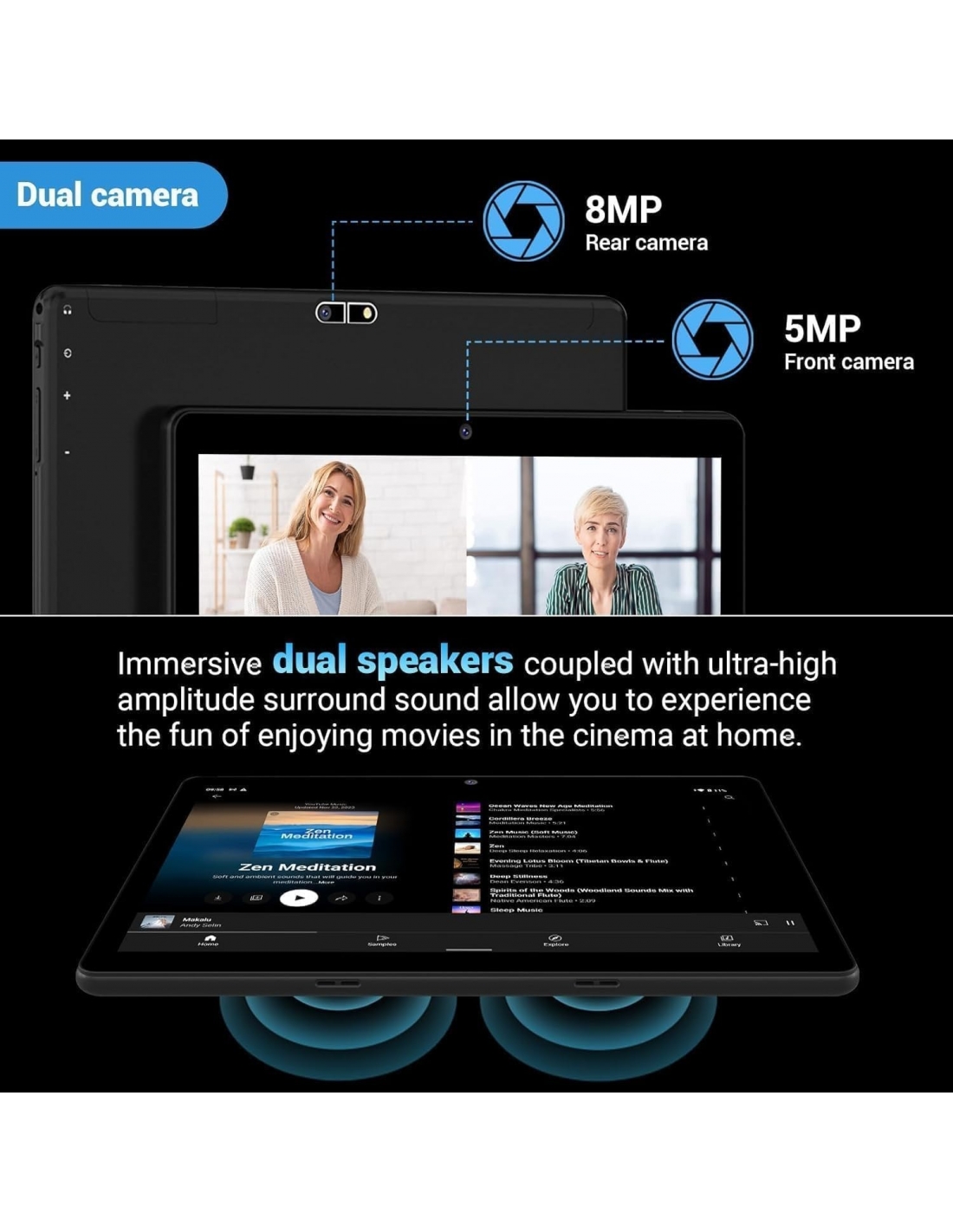 - ♥ Altoparlanti stereo simmetrici + Display IPS ♥ tablet 10 pollici HD schermo IPS Full View con tecnologia G+G e risoluzione 1280*800 con tecnologia T-colour Enhancement per immagini dai colori reali e video nitidi con un'efficace riduzione della luce blu. Dotato di 2 altoparlanti stereo e 5 fori sonori simmetrici incorporati per un suono cristallino, potrete sperimentare la versione domestica del cinema.