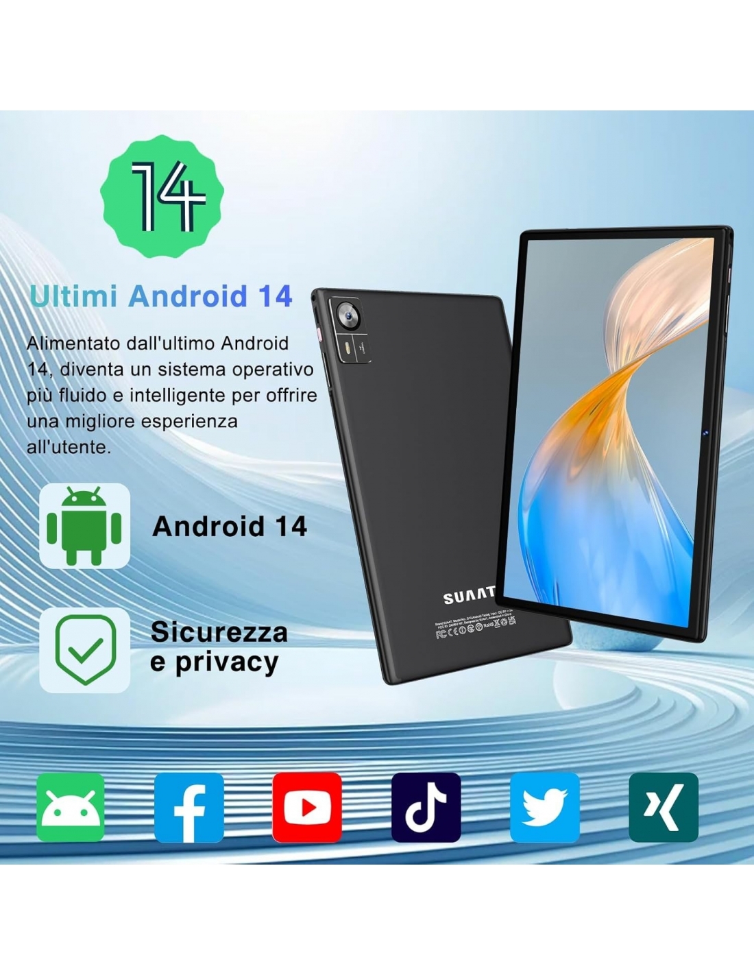 SUAAT S10 Tablet Android 14 10 Pollici 22GB RAM+128GB ROM(1TB TF), 8000 mAH