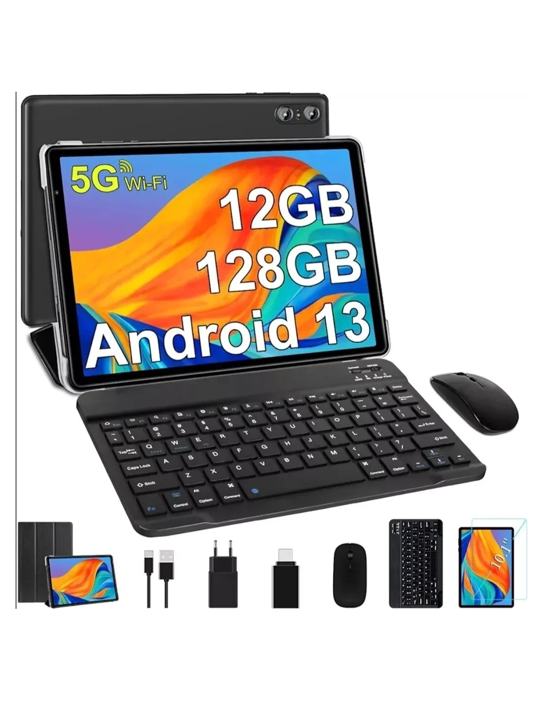 SEBBE Tablet 10 Pollici Android 13 Tablet 12GB RAM+128GB ROM (TF 1TB), Tablets 5G WiFi Octa-Core 2.0 GHz, Google GMS/Widget/GPS/Bluetooth5.0/6000mAh/5+8MP, Tablet con Tastiera e Mouse - Nero