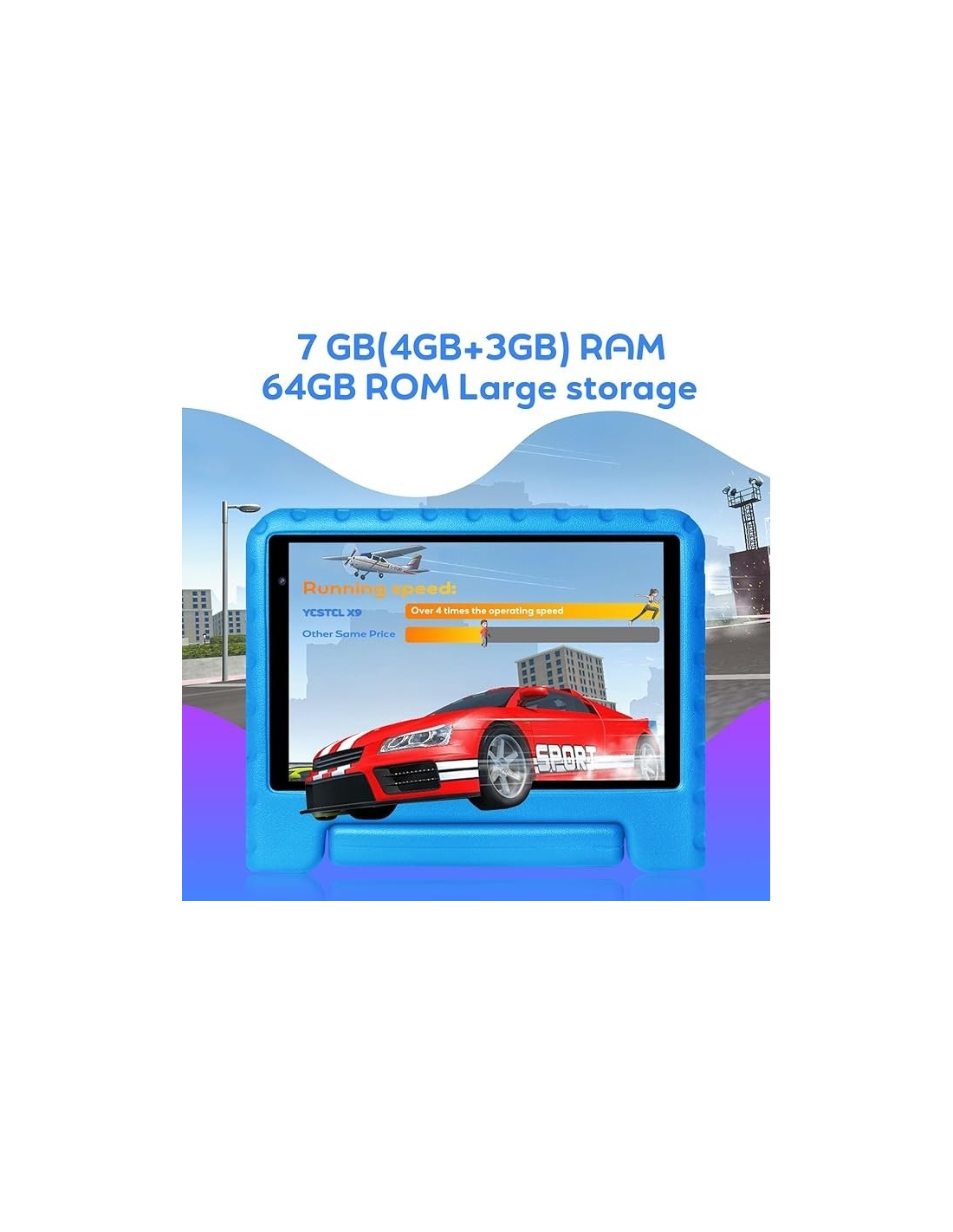 - 【7GB RAM + 64GB ROM + 1TB Espandibile】X9 Tablet Bambini è dotato di 7GB(3+4) RAM + 64GB ROM (la scheda SD può essere espansa fino a 1TB, esclusa la scheda SD), con la nuova tecnologia di espansione della memoria, lo spazio di archiviazione soddisfa le canzoni preferite dei bambini, le animazioni, gli audiolibri e i giochi. È inoltre possibile scaricare una serie di giochi e app di apprendimento dal Store preinstallato per godere del divertimento offerto dai tablet per bambini.