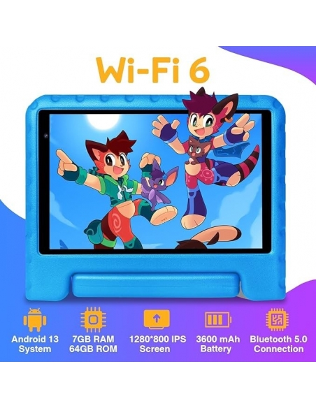 YESTEL x9 Tablet Bambini 8 Pollici Android, 7GB RAM 64GB ROM 1TB Espandibile, WiFi 6 BT 5.0, 5MP+2MP, 3600mAh, 1280 * 800, GPS, Controllo Parentale, Apprendimento Educazione, Tablet PC