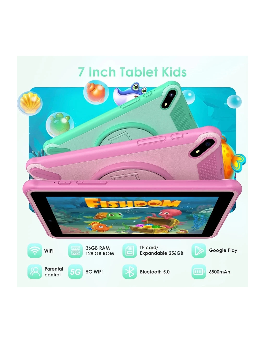 - 🔋5G Dual Band WIFI & 6580mAh Battery 🔋 Tablet per bambini è dotato di uno schermo Full HD G+G da 7 pollici, che consente di personalizzare la luminosità e il contrasto dello schermo in base alle preferenze personali. La regolazione automatica della luminosità e il design anti luce blu proteggono meglio la vista del bambino. Il Bluetooth 5.0 stabile e veloce integrato garantisce una connessione Wi-Fi stabile e una più ampia gamma di ricezione del segnale.